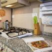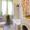 Cucina grande e luminosa. Ideale per le vacanze direttamente sulla spiaggia. Bagno con mezza vasca e doccia.