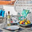 La grande terrazza è il posto perfetto per bere un bicchiere di vino contemplando il tramonto sul mare.