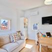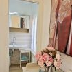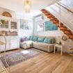 Una graziosa scala conduce alla zona giorno su cui spicca la cucina col suo bagno e la grande terrazza vista mare, mentre un'abbondante luce naturale pervade l'ambiente.