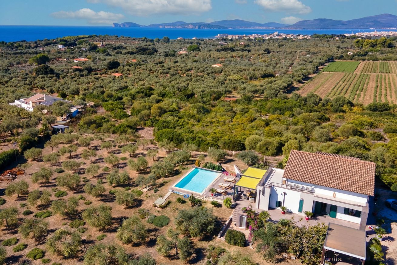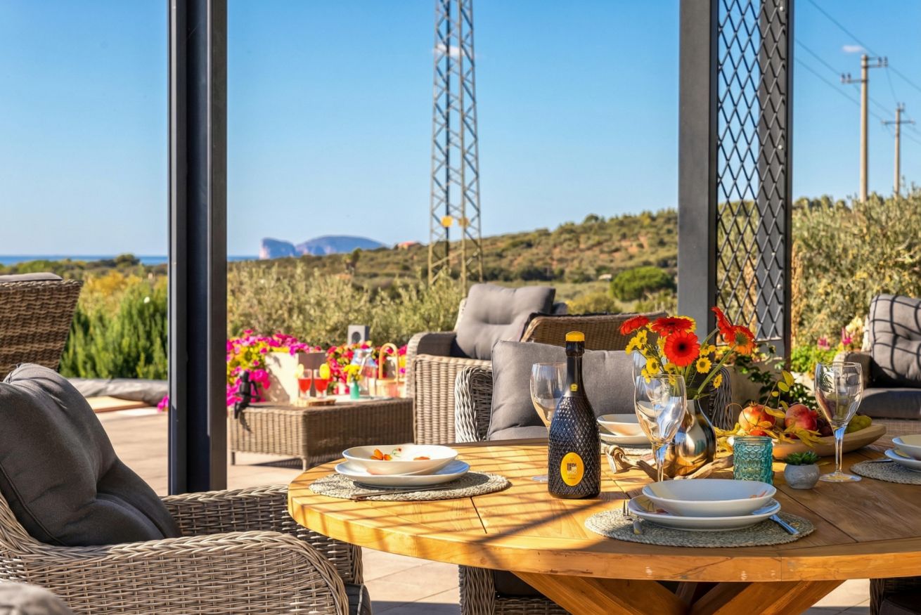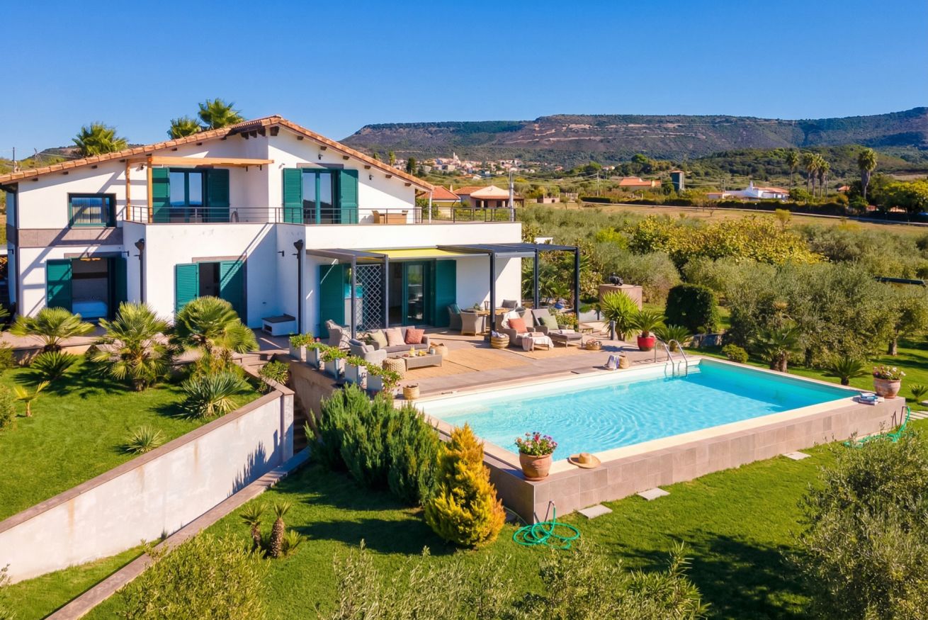 The villa is located about 2.5 kilometres from the Catalan town of Alghero, at the apex of a valley.