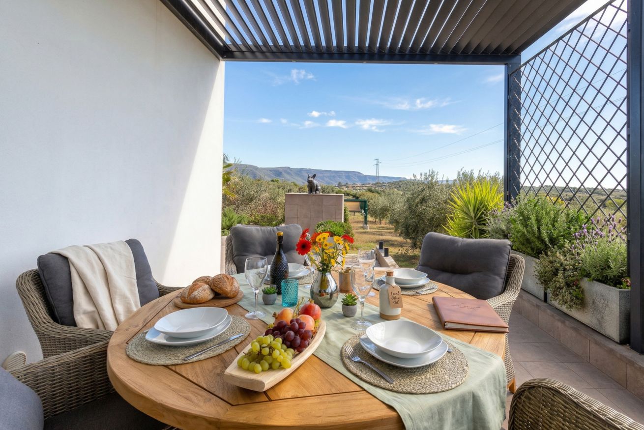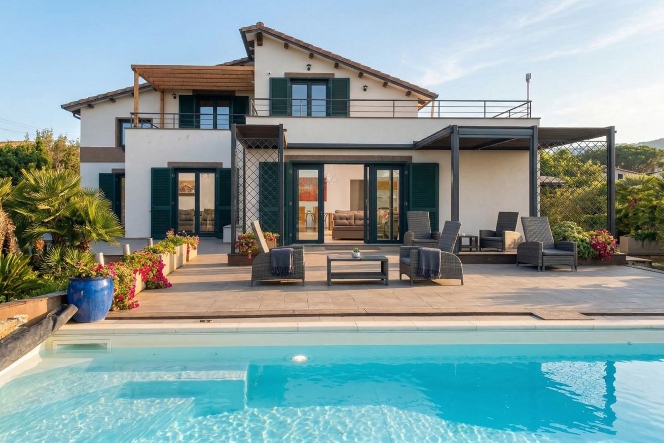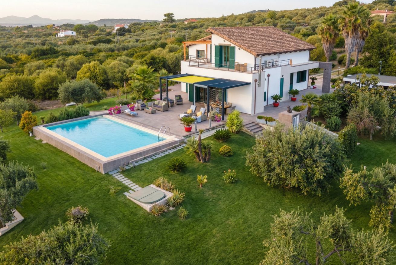 The villa is located about 2.5 kilometres from the Catalan town of Alghero, at the apex of a valley.