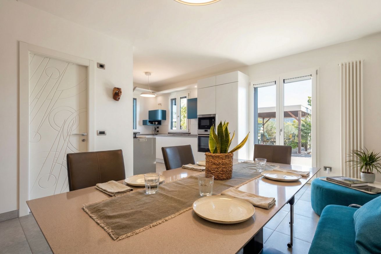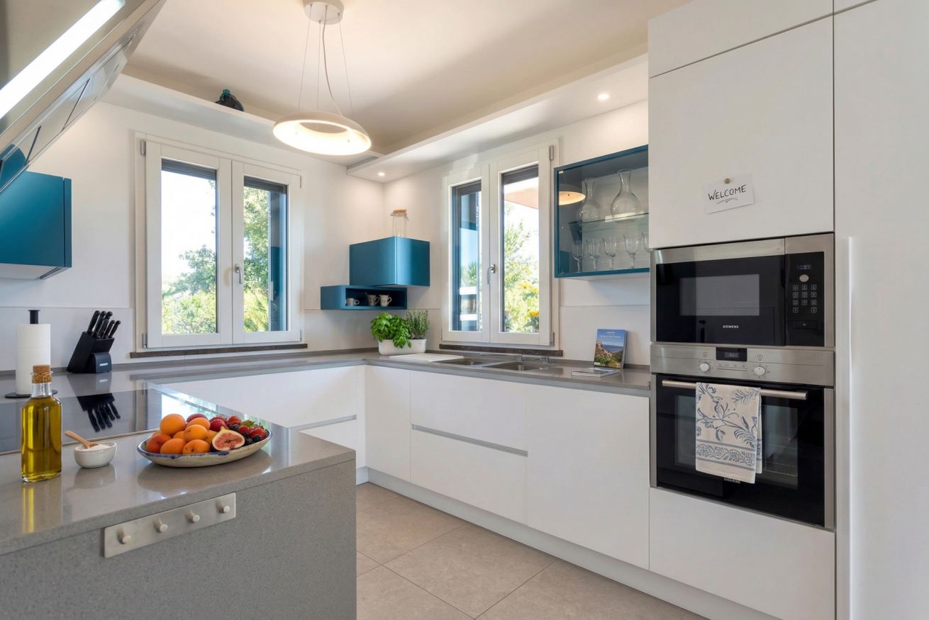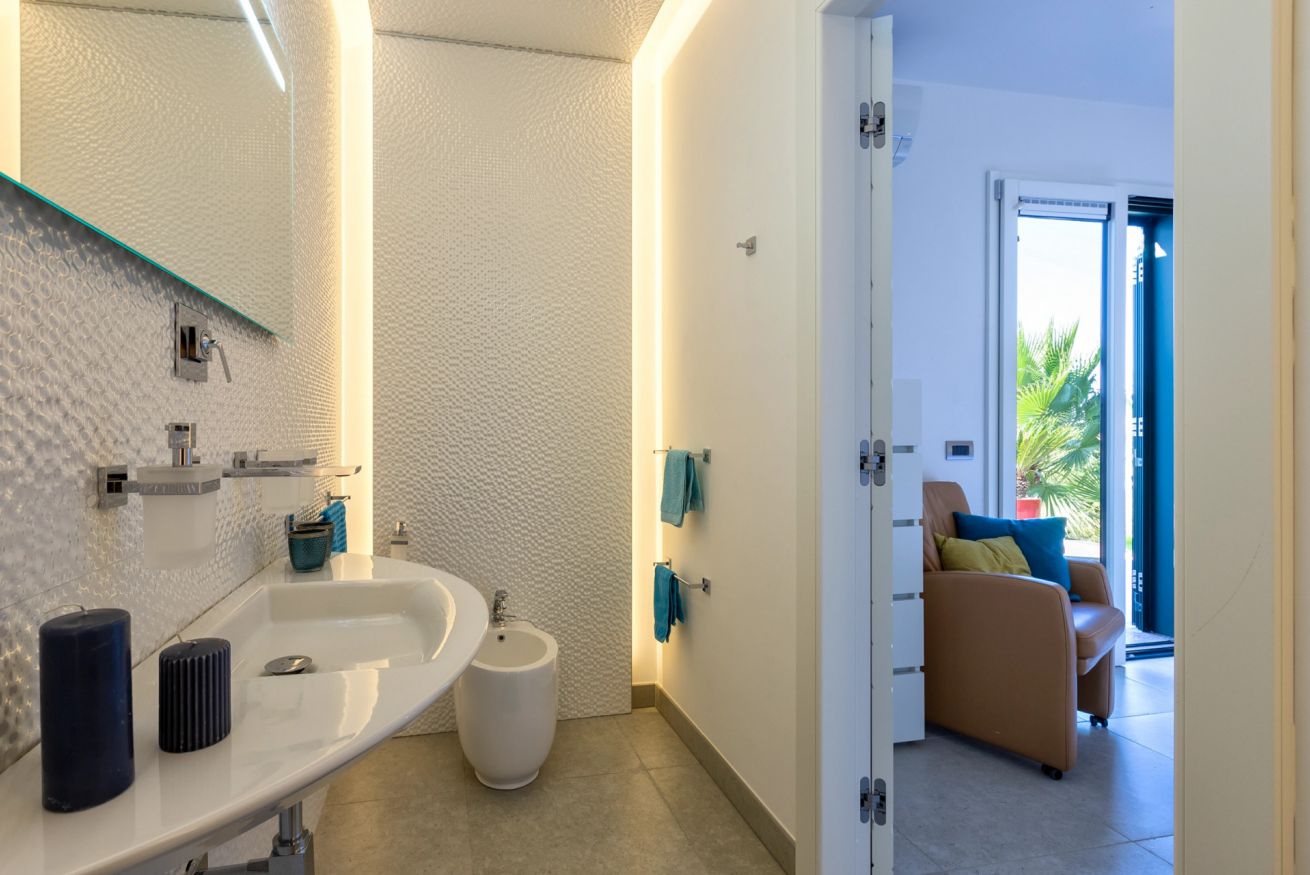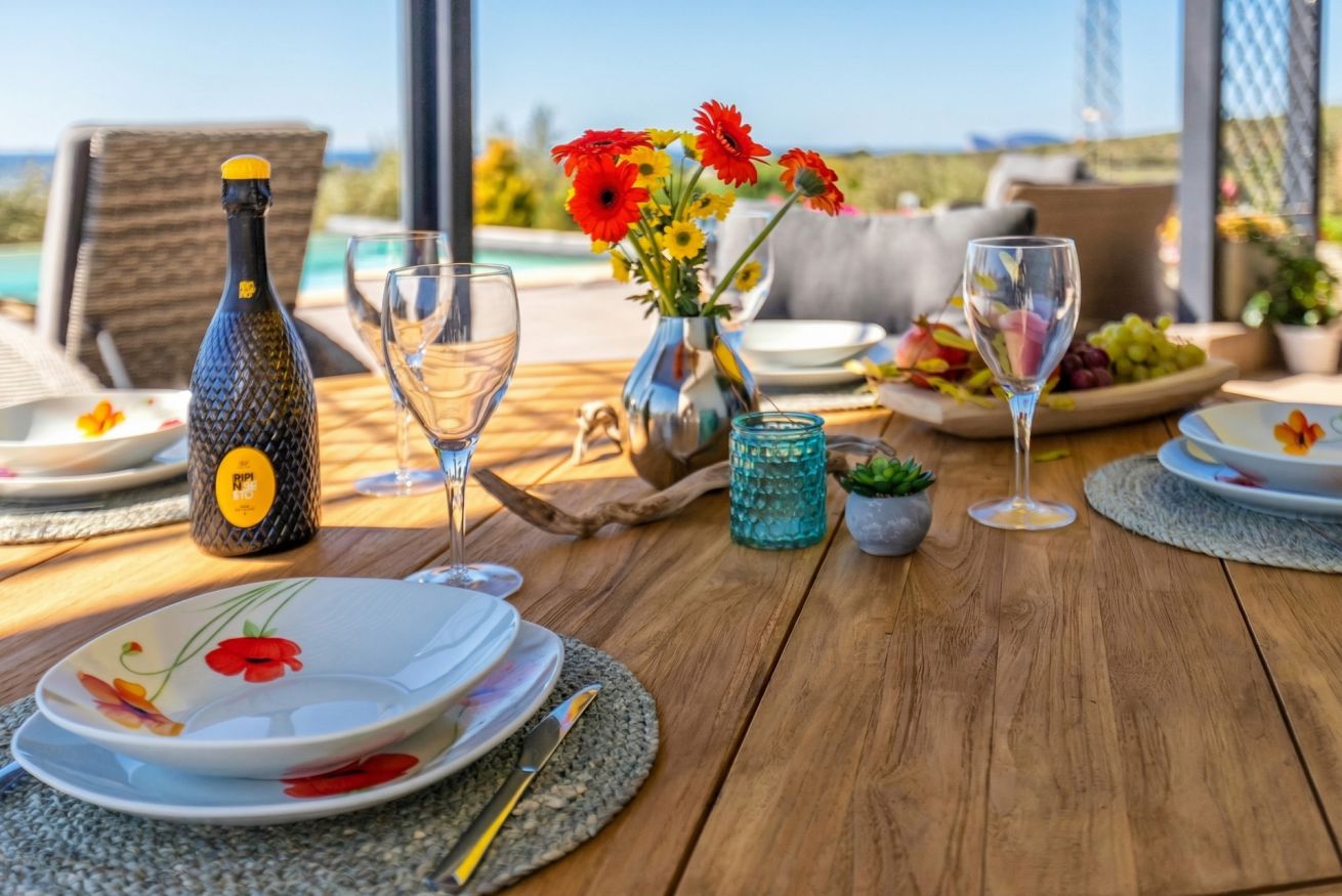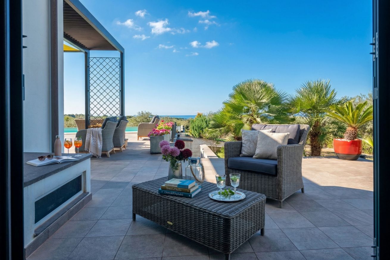 The contemporary and well-equipped kitchen is a plus that adds comfort to those staying at the villa. The refined interior and fine outdoor furniture will make your holiday an oasis of peace.