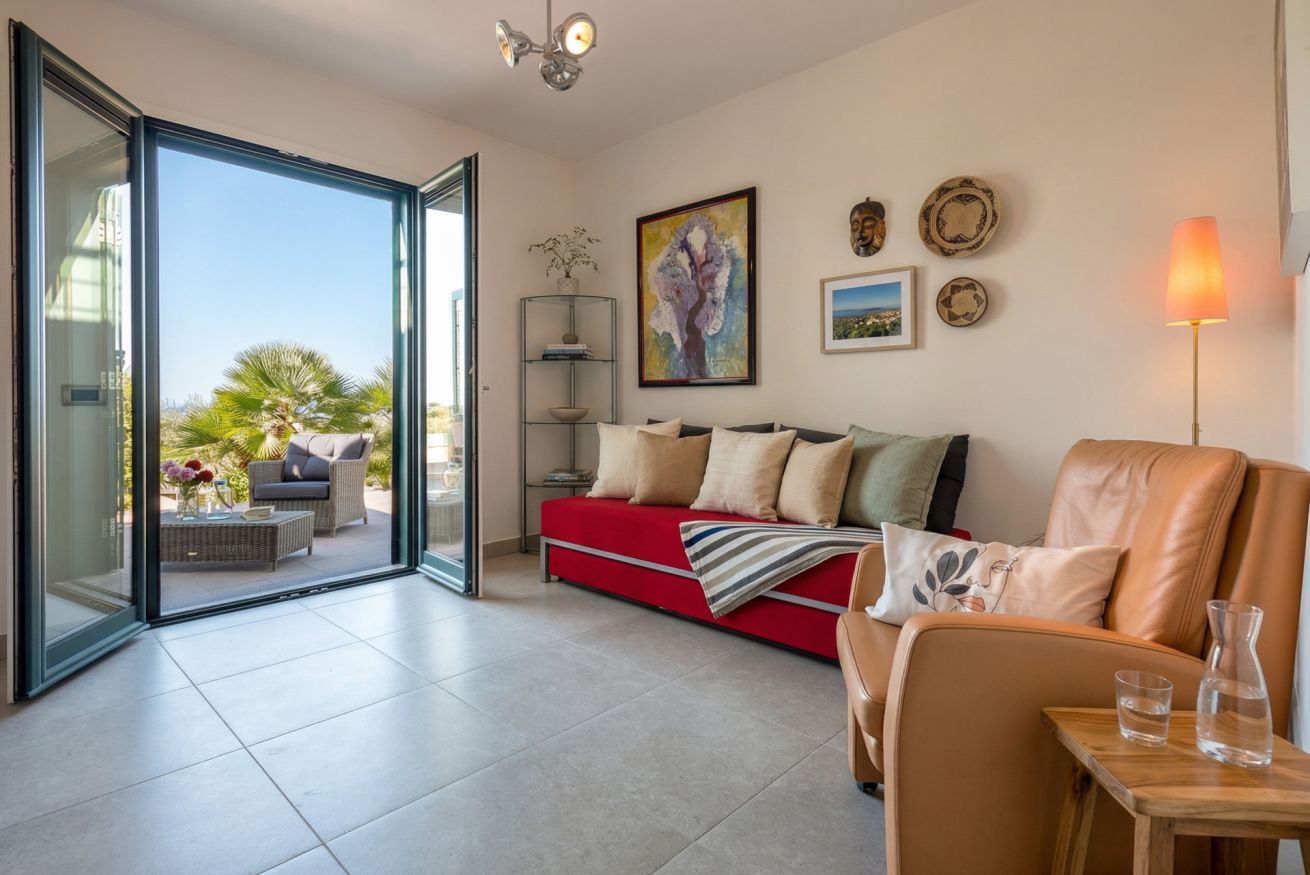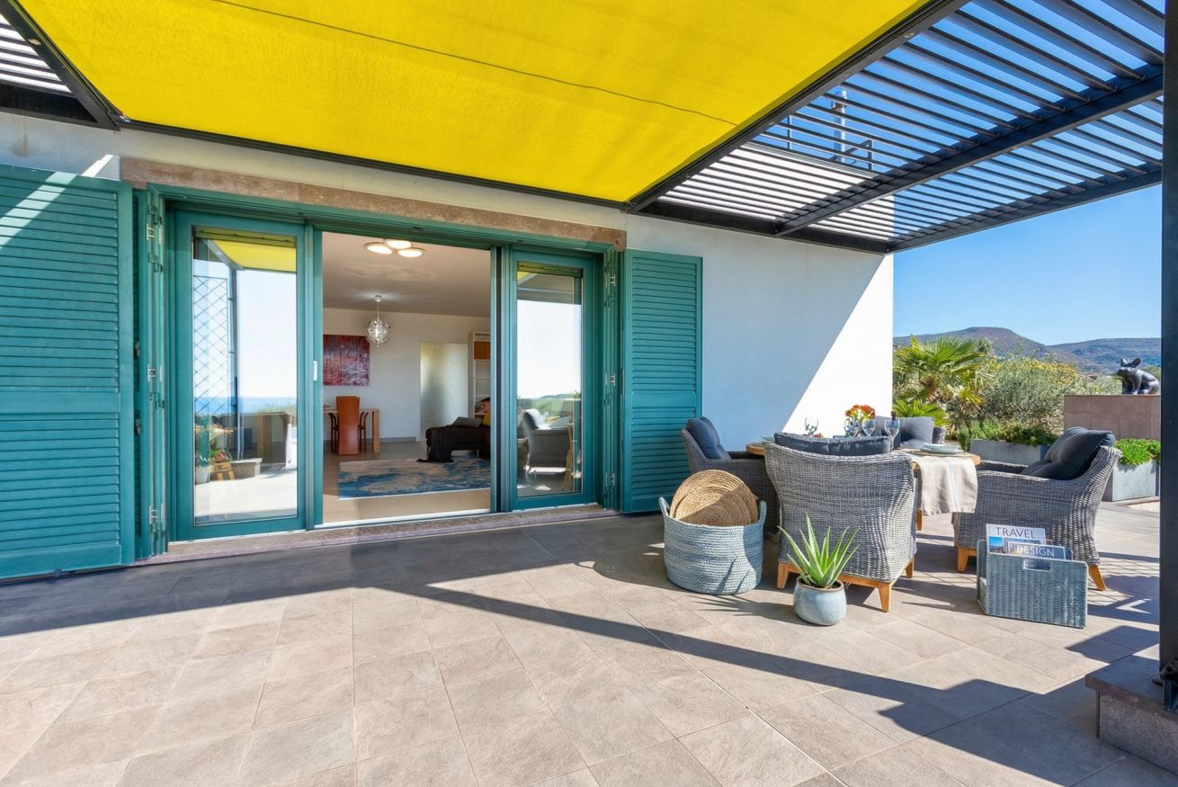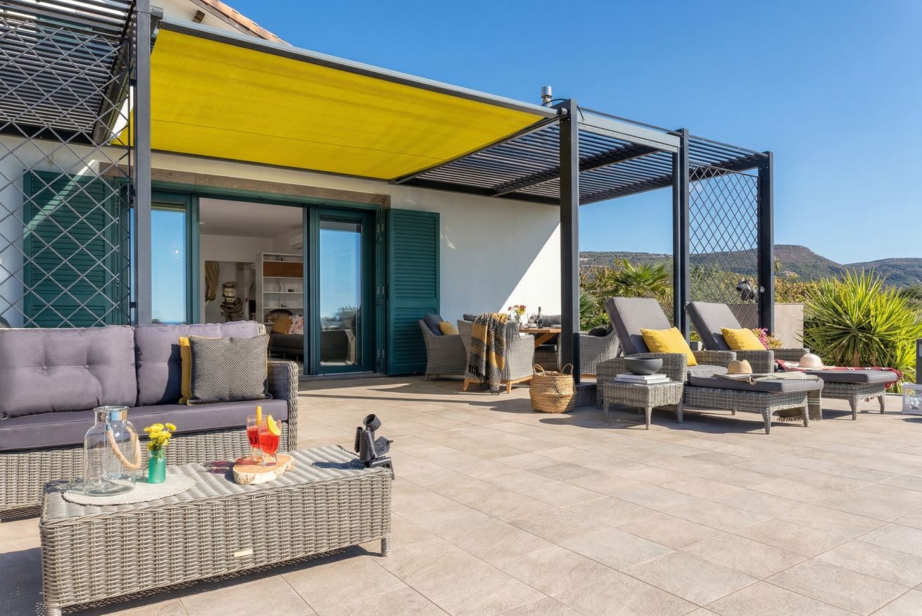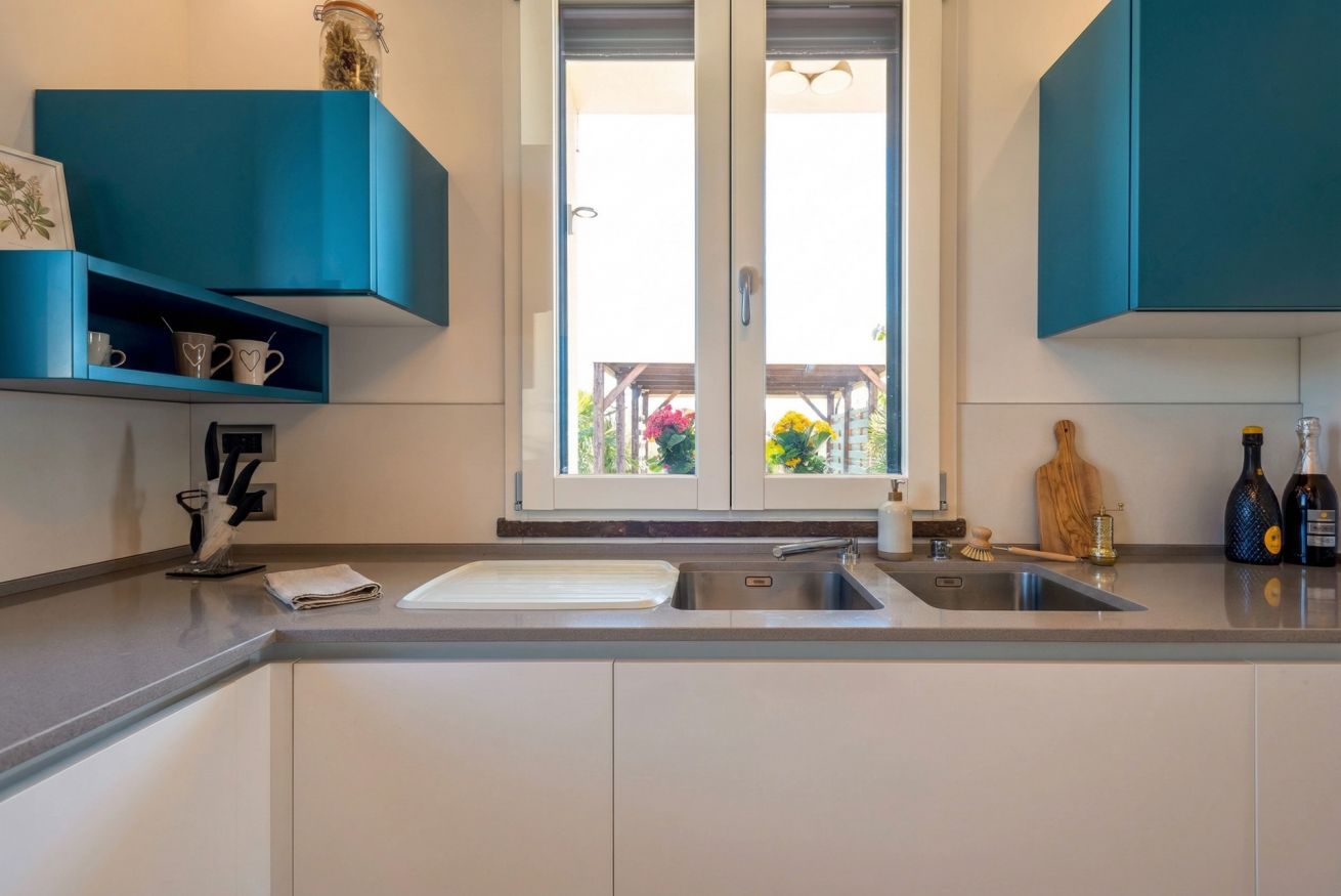 The contemporary and well-equipped kitchen is a plus that adds comfort to those staying at the villa. The refined interior and fine outdoor furniture will make your holiday an oasis of peace.