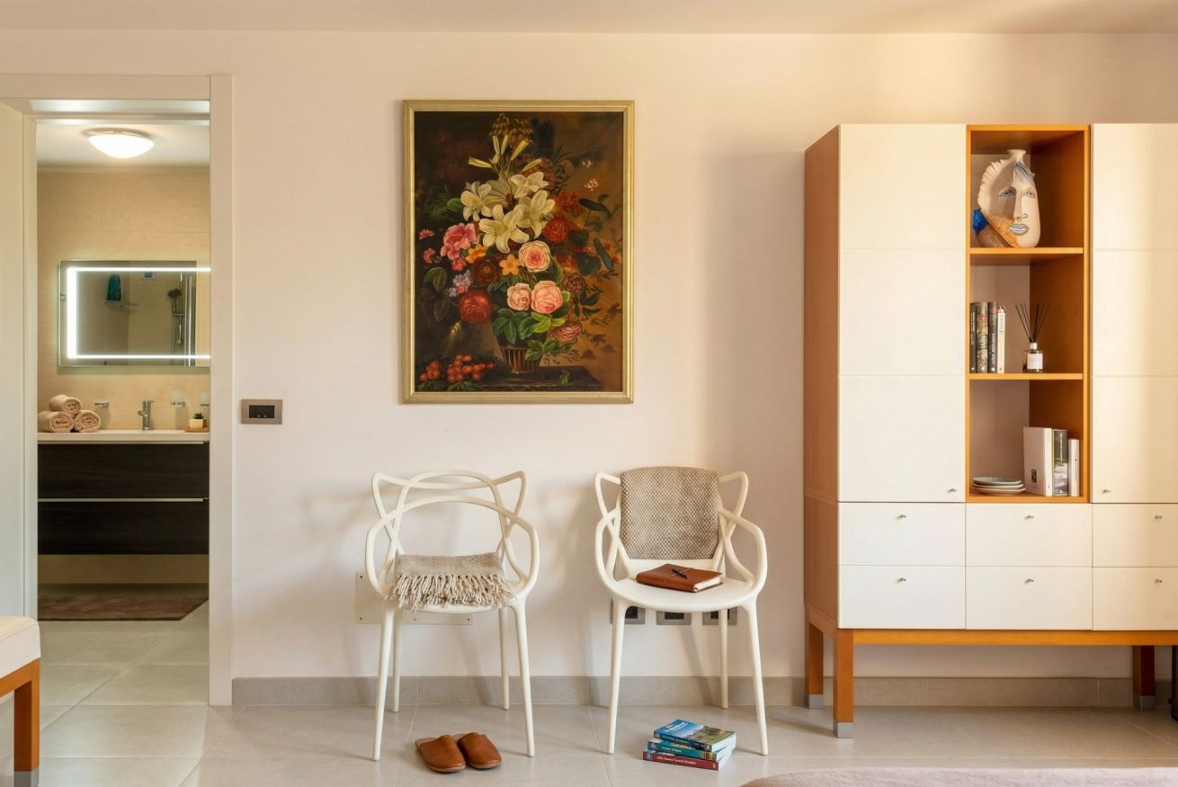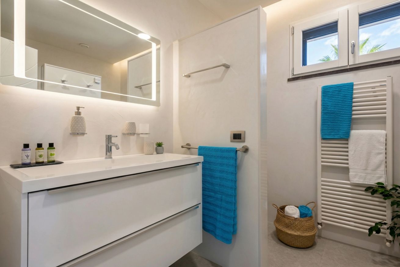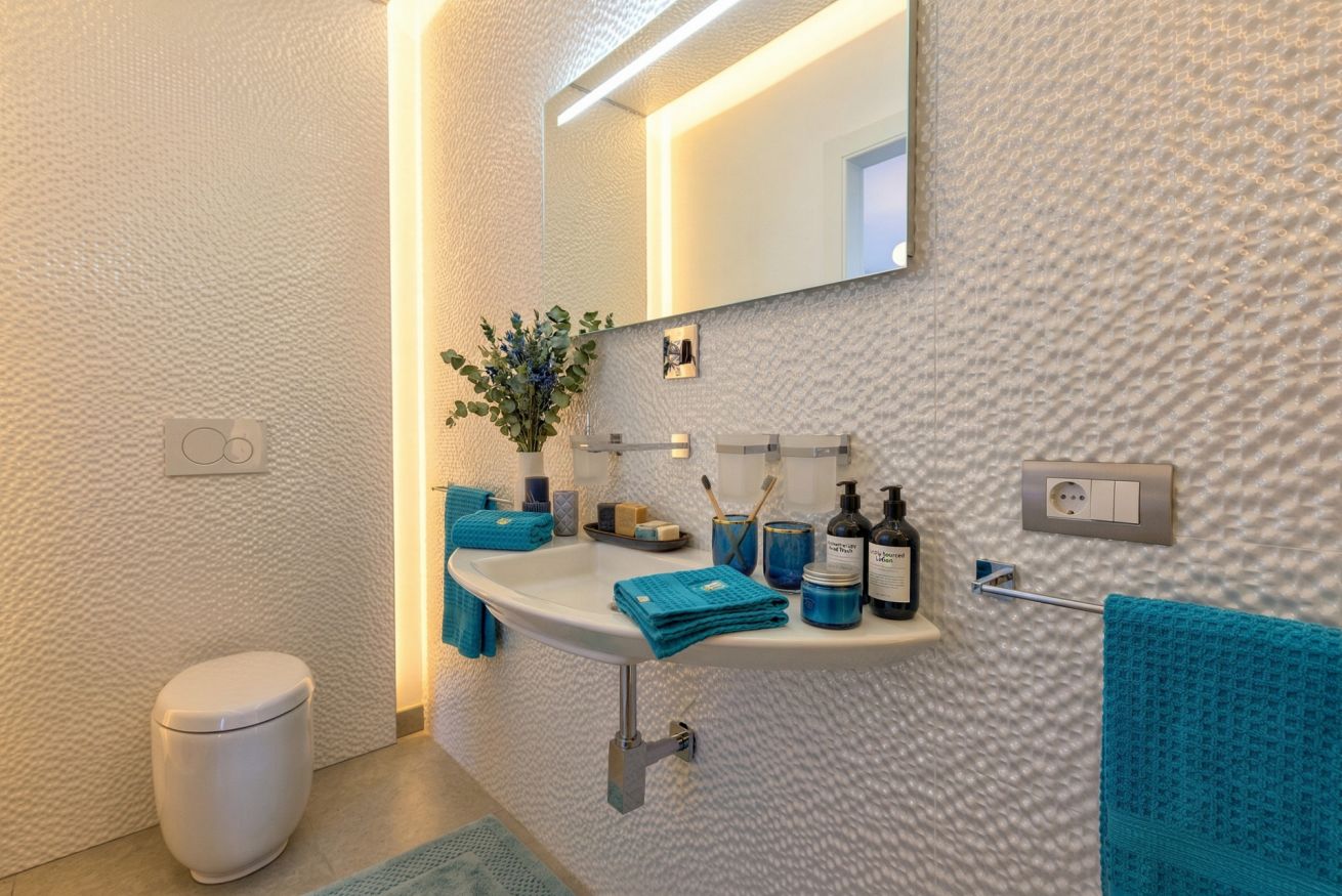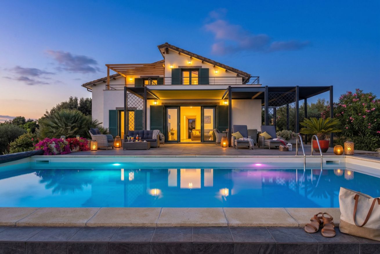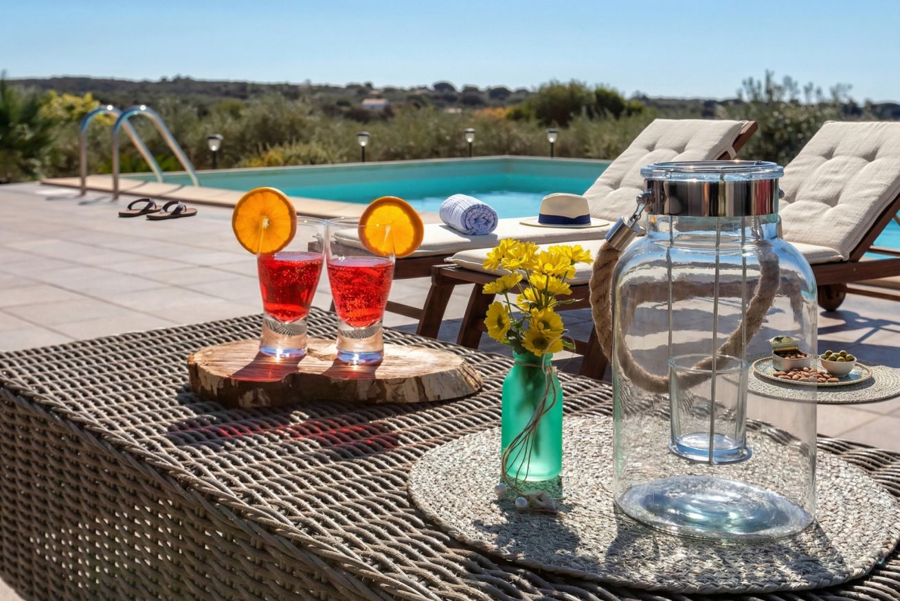 The contemporary and well-equipped kitchen is a plus that adds comfort to those staying at the villa. The refined interior and fine outdoor furniture will make your holiday an oasis of peace.