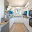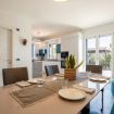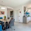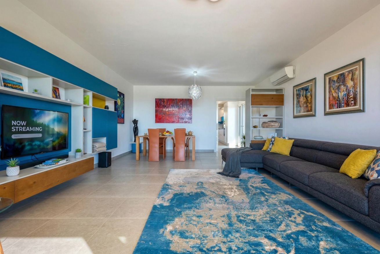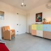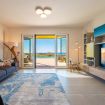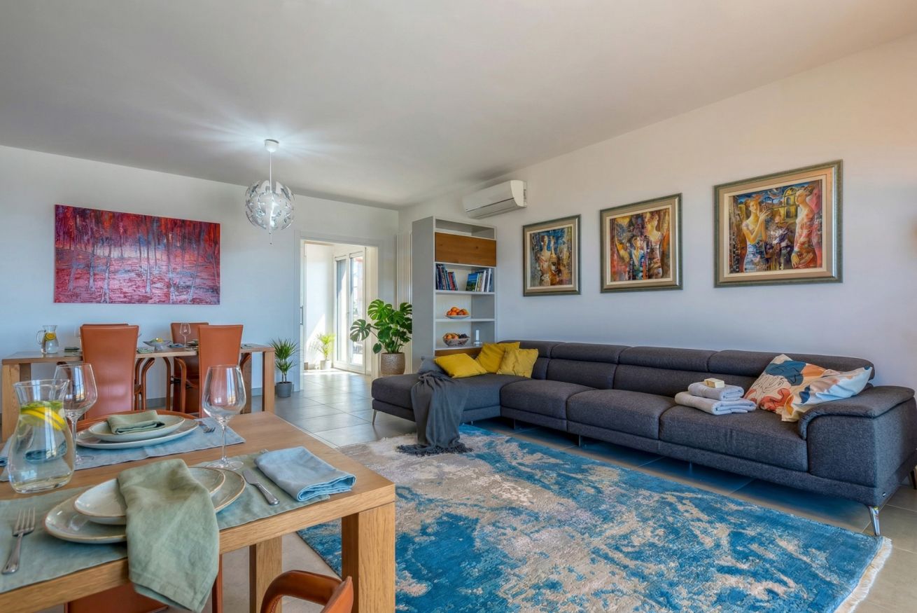 The living room, characterised by a large sofa and the breathtaking view, is separated from the dining room from which you access the kitchen.