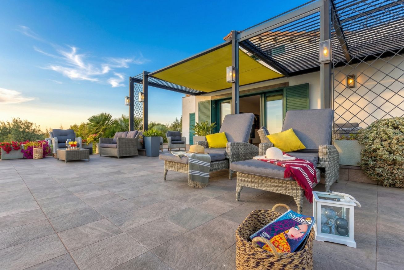 The villa is surrounded by acres of Sardinian countryside with its typical colours and scents, allowing guests to take long walks even within the estate.
