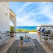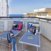 L'attico ha una grande terrazza vista mare completamente arredata con tavoli e sdraie, sdraio e divani, dove rilassarti guardando il mare.