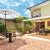 Questa grande villa bifamiliare, arredata con gusto ed eleganza, è immersa in un bel giardino ben curato con prato e mobili da esterno, completi e molto funzionali.
