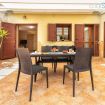 Al di fuori la Villa ha una grande terrazza coperta con una tenda, arredo da giardino (sedie, tavolo ed ombrelloni) e la porzione competente di giardino.