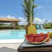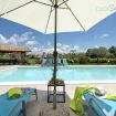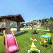 Nel prato, di fronte la veranda vi è la piscina privata (16 x 5) con una parte più bassa adatta ai più piccoli e una parte più alta nella quale ci si può tuffare. Intorno alla piscina sono presenti sdraio e ombrelloni. La villa e il giardino, ad uso esclusivo, sono stati pensati per la sicurezza dei bambini più piccoli.
