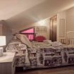 Tre camere da letto, ciascuna con bagno e terrazzo, si trovano sul primo livello. La quarta camera si trova nel al piano superiore mansardato di ampia altezza, che garantisce ulteriore privacy e regala un’atmosfera accogliente e suggestiva, anche questa camera dispone di bagno e terrazzino privato.