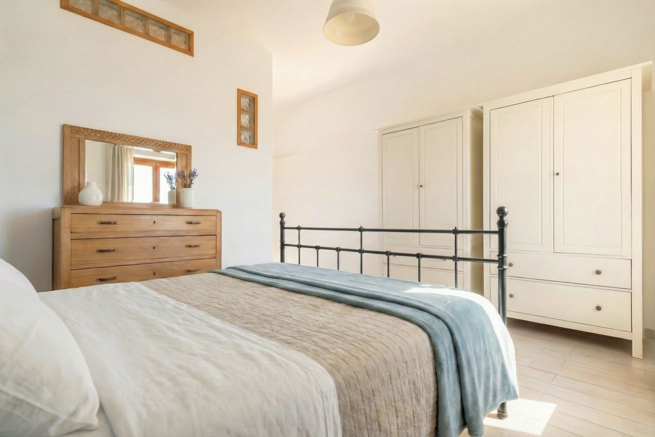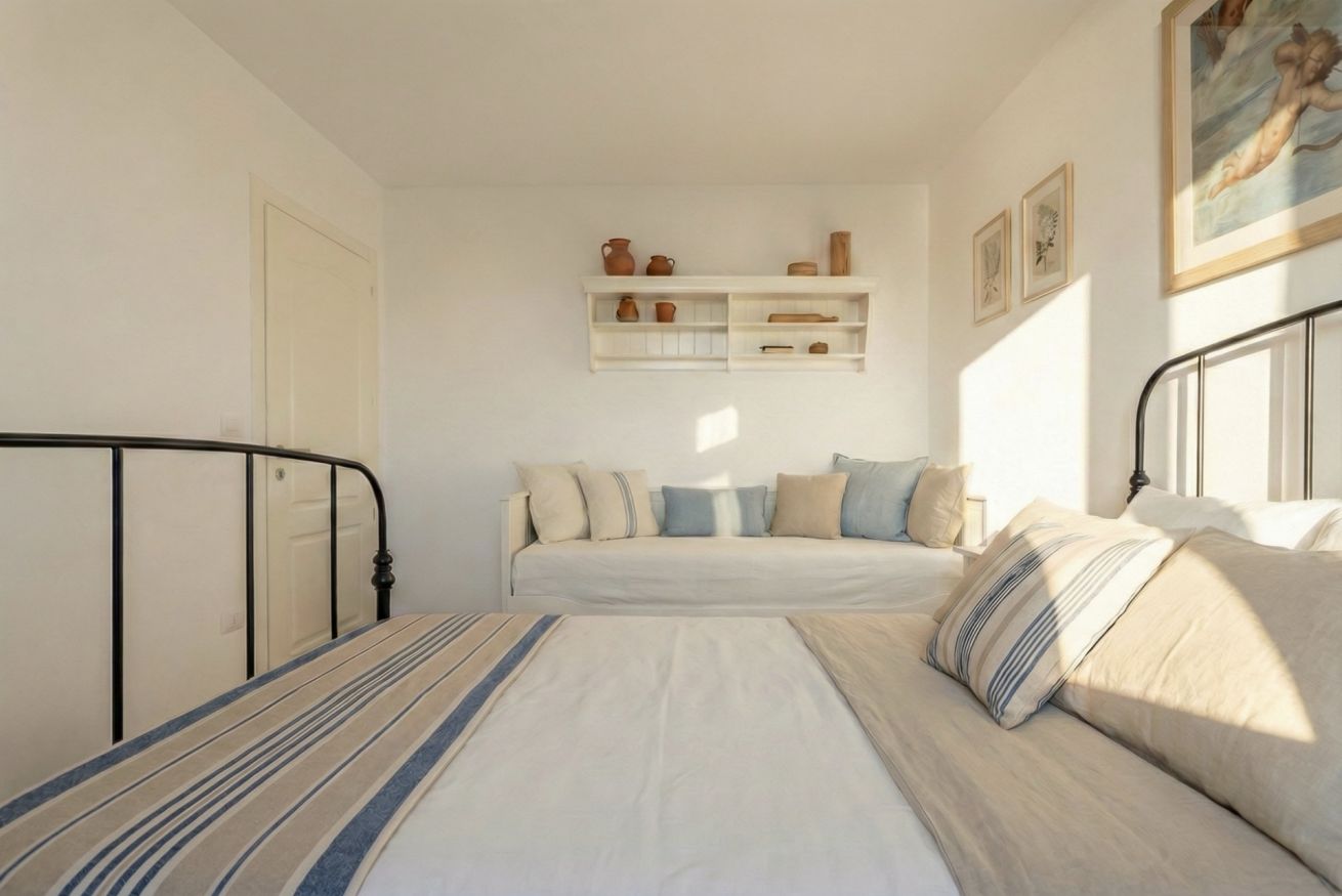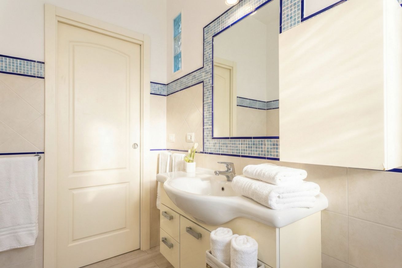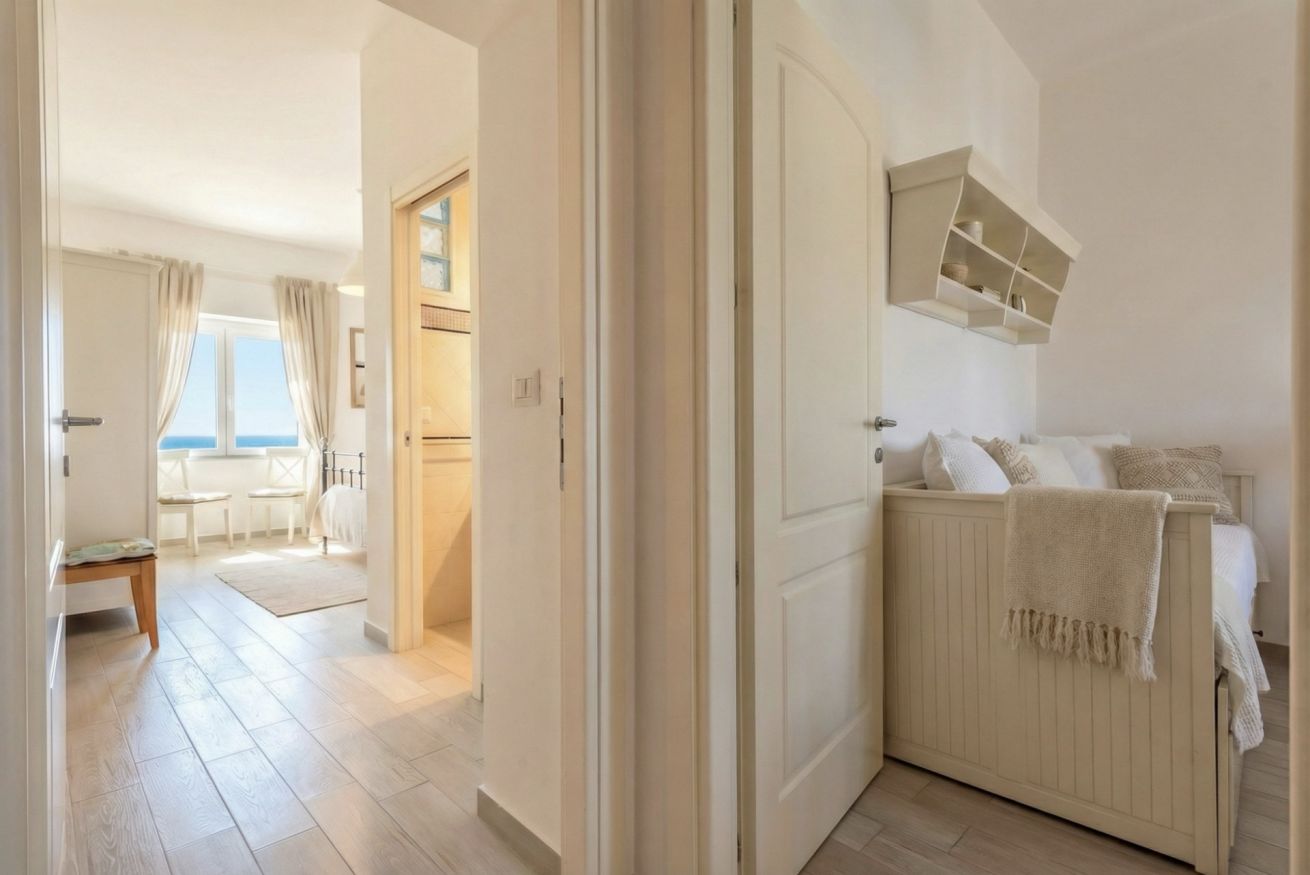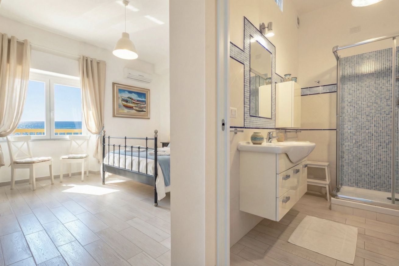 La casa è composta di 3 ampie camere da letto vista mare (due matrimoniali, di cui una con bagno in camera, ed una matrimoniale con letto singolo aggiuntivo - per un totale di 7 posti letto comodi), 2 bagni con doccia, ripostiglio, cucina arredata con gusto e grande salone.