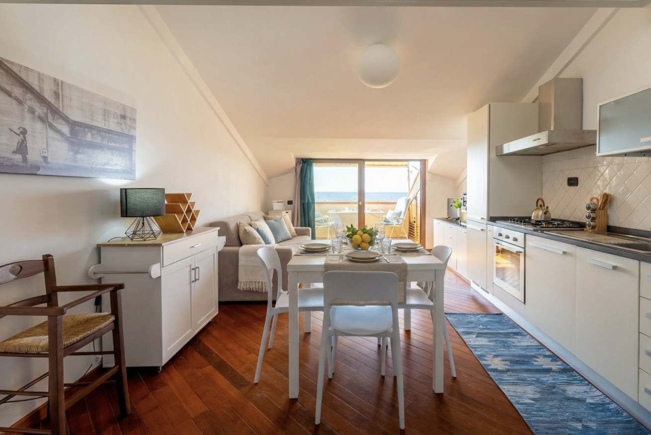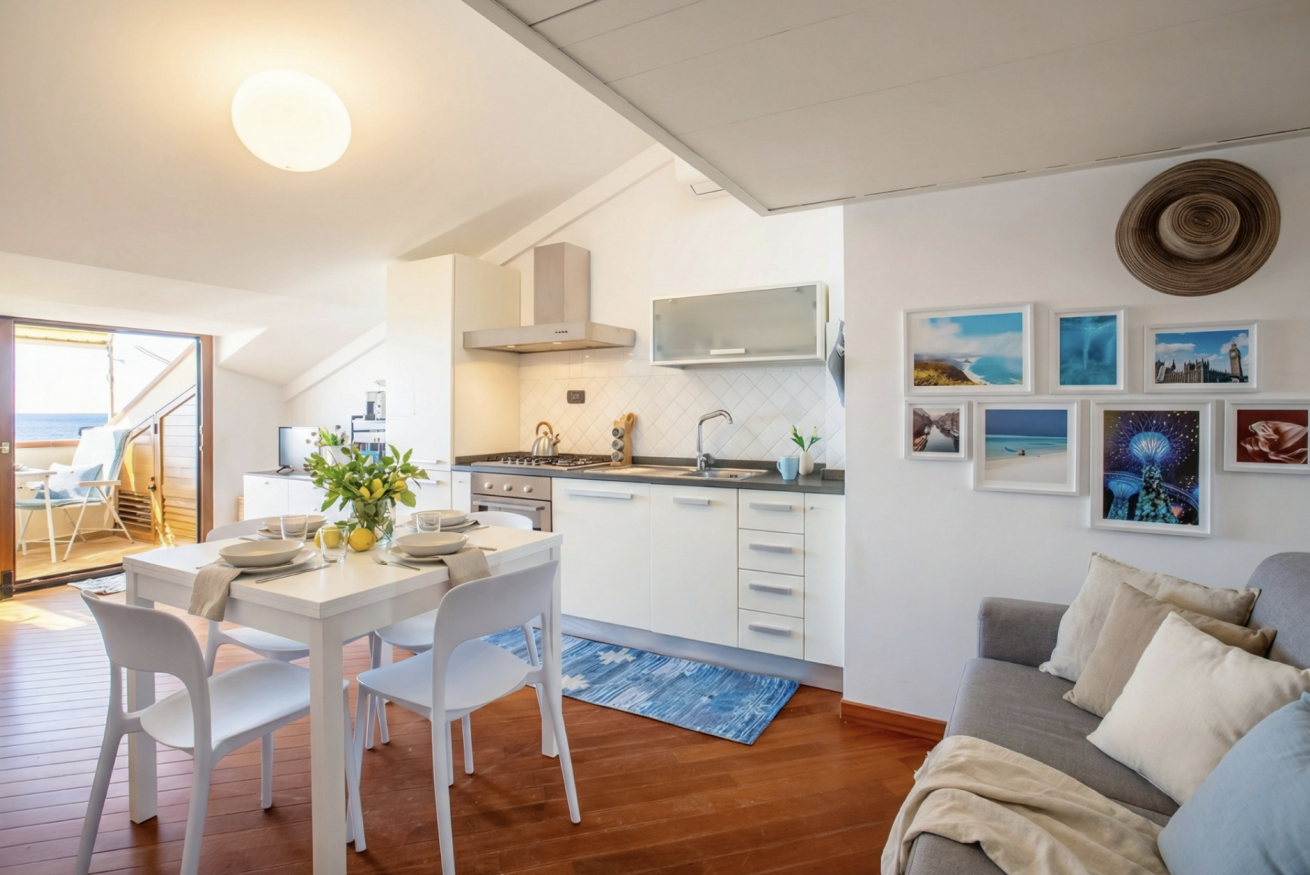 La casa è luminosa e accogliente, con una splendida terrazza vista mare dove potrai rilassarti al tramonto o gustare un bicchiere di vino dopo una giornata di mare.