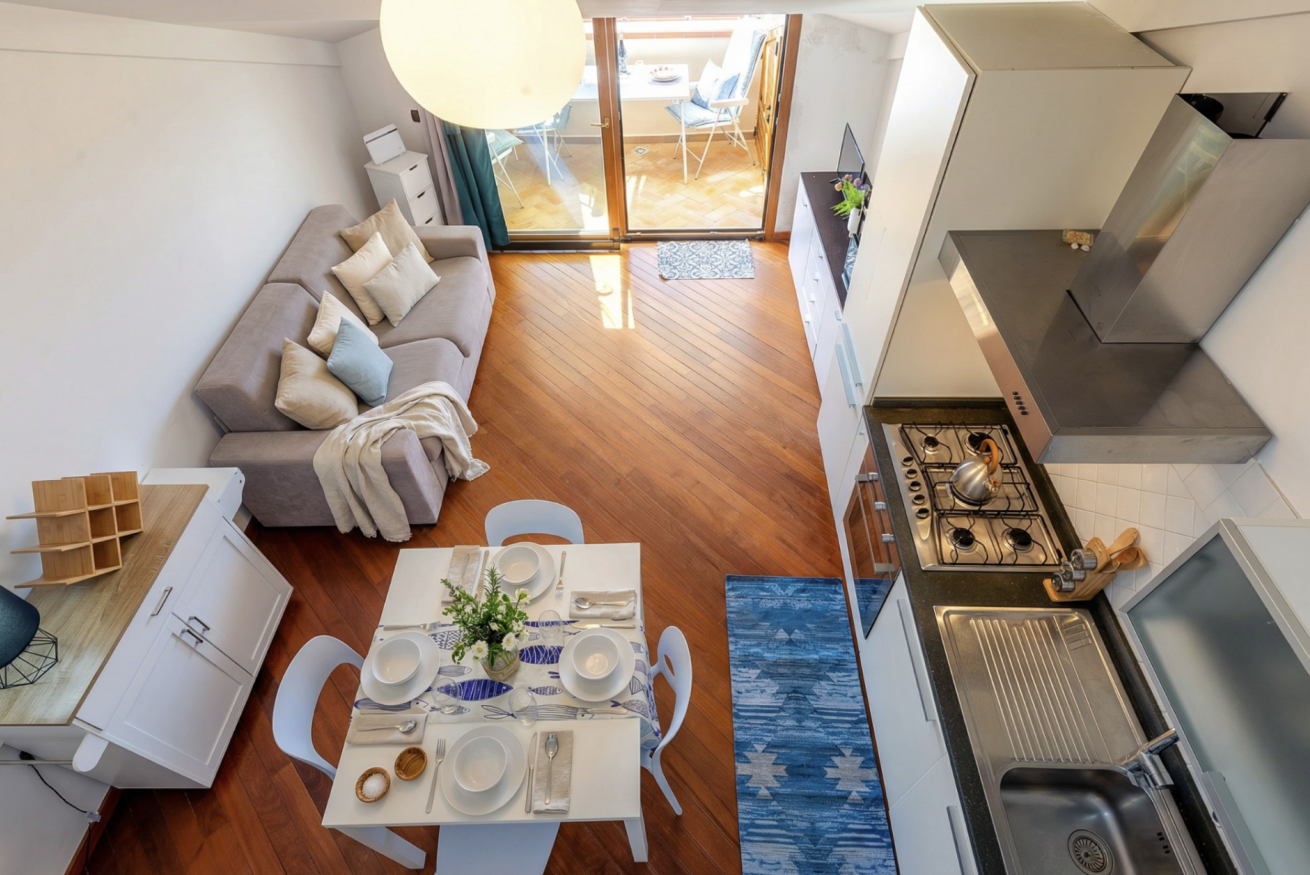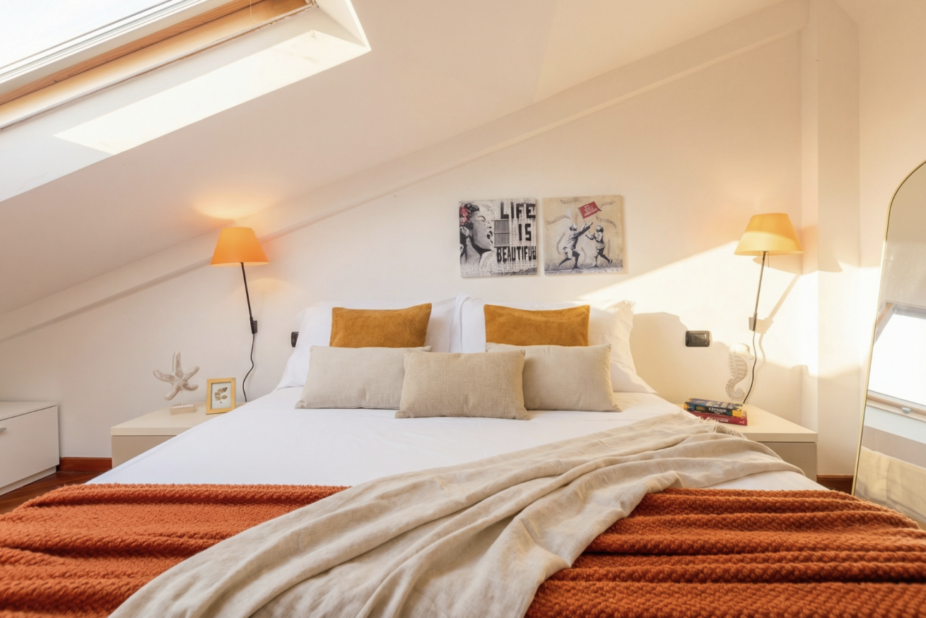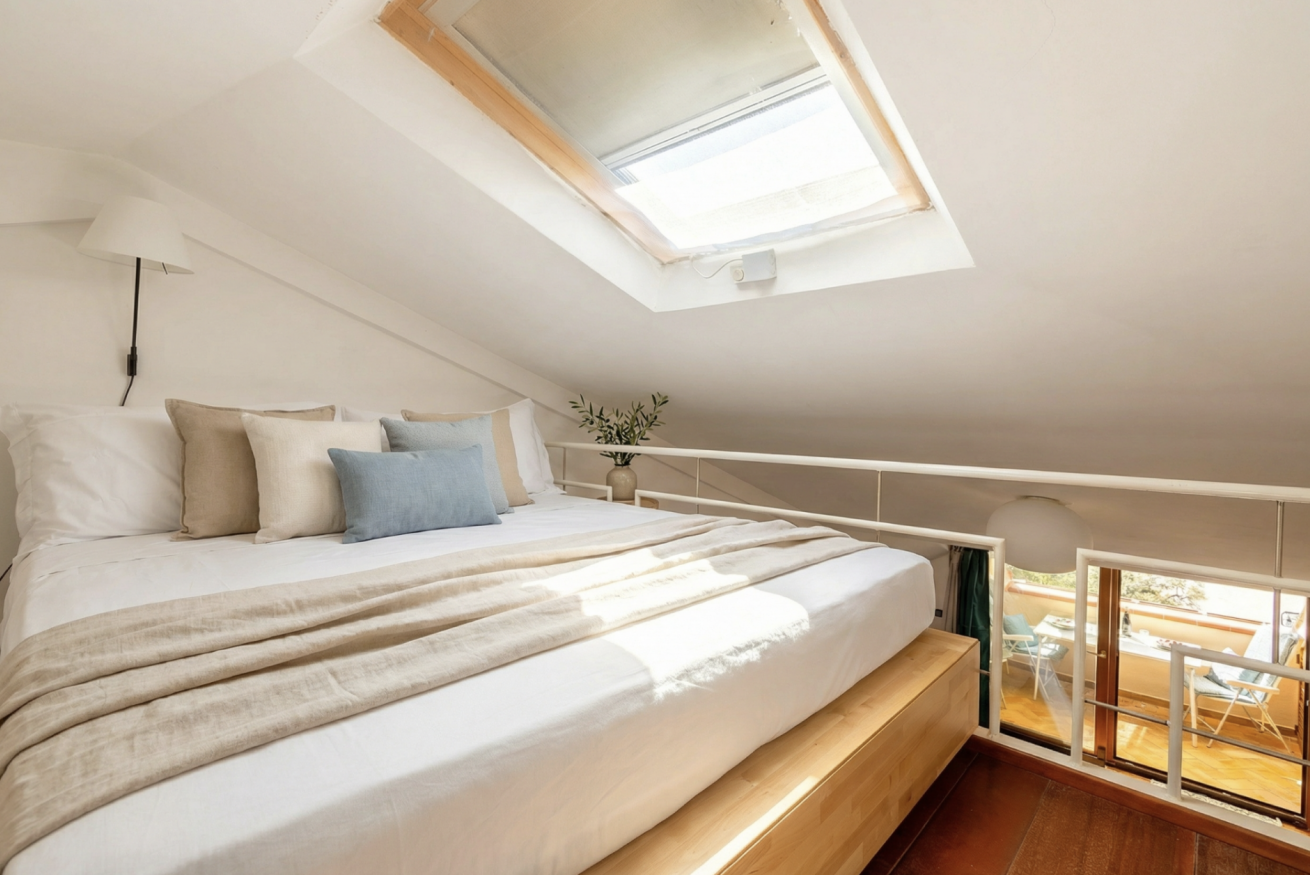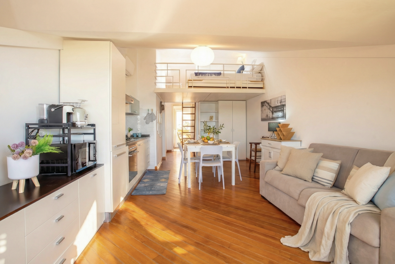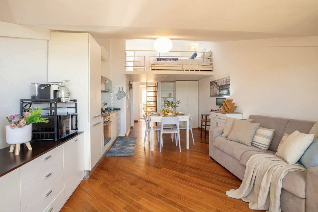 All’interno troverai una camera matrimoniale comoda e silenziosa, un soppalco che affaccia sull'area living con un secondo letto matrimoniale e un divano letto matrimoniale nel soggiorno.