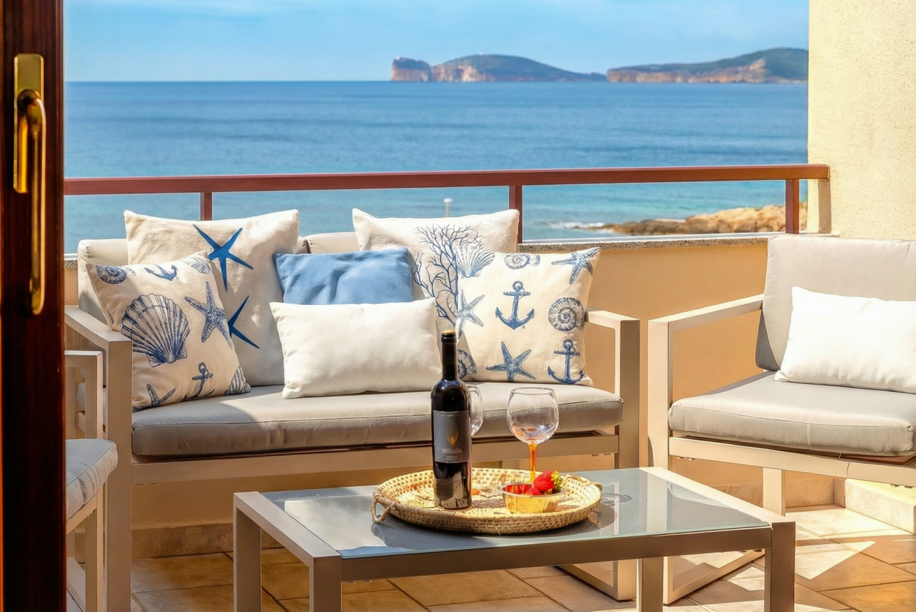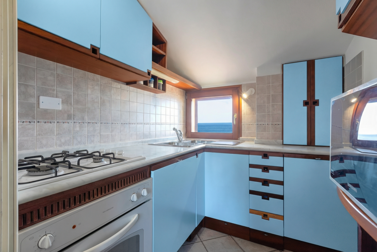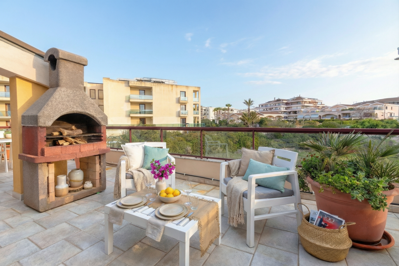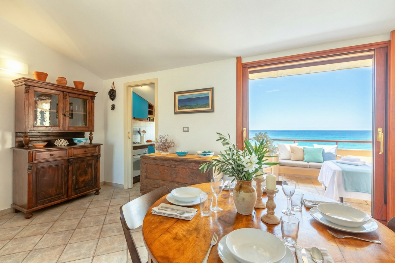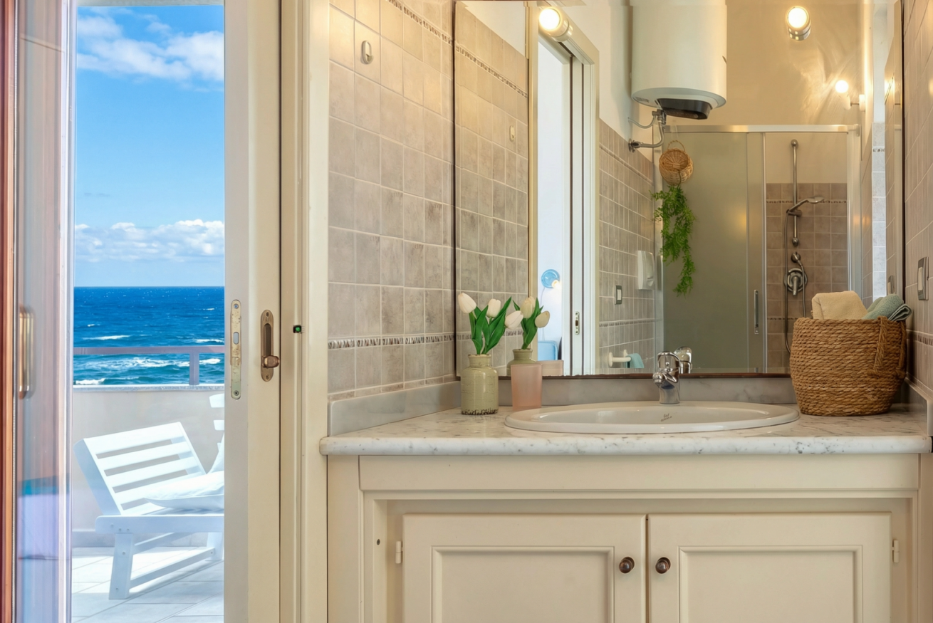 Affacciato direttamente sul mare, l’appartamento vanta una terrazza panoramica fronte mare dove potrai rilassarti con una vista spettacolare sull’orizzonte, perfetta per colazioni lente, letture al sole o cene romantiche al tramonto. Sul retro, una seconda terrazza con barbecue offre un angolo riservato per godersi grigliate all'aperto con amici o famiglia.