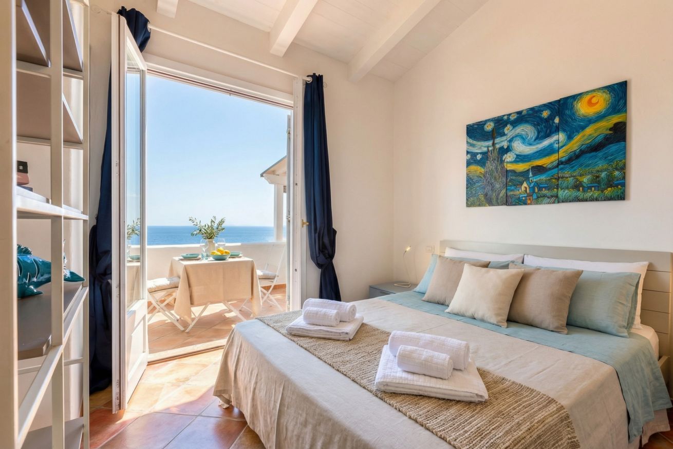 Ideale per famiglie con bambini, o giovani in vacanza, questo attico meraviglioso al terzo piano, offre ampi spazi conviviali, 3 ampie camere da letto (due matrimoniali - di cui una con bagno in camera - e una con due letti singoli a castello) 2 bagni con doccia, salone con comodi divani, tavolo da pranzo per 9 persone, cucina fornita di tutti gli elettrodomestici, veranda coperta ed arredata con tavolo per 8 persone, sedie, ombrelloni, sdraio, e vista d’incanto sul mare a 180 gradi.