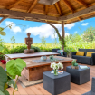 Nei giardini troverete piante e fiori autentici della Sardegna che circondano le verande ed il patio, con divani da esterni che può essere utilizzato anche per eventi, sono il punto forte della villa.