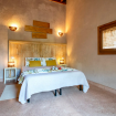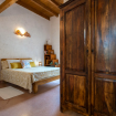 Le camere da letto sono in totale 9, arredate con mobili rustici, porte in legno massello e soffitto con travi a vista; in totale ci sono sei camere matrimoniali con bagno privato con vasca o doccia e tre camere con 2 letti singoli ciascuna ed il bagno privato.