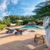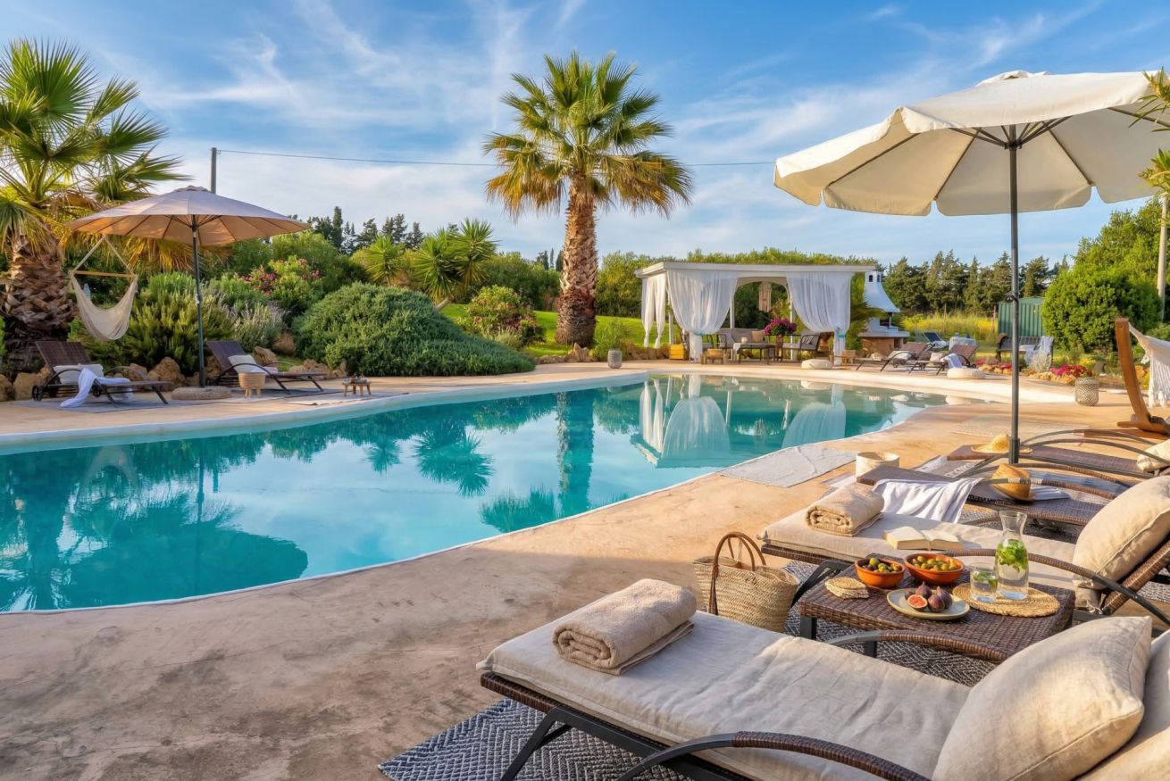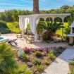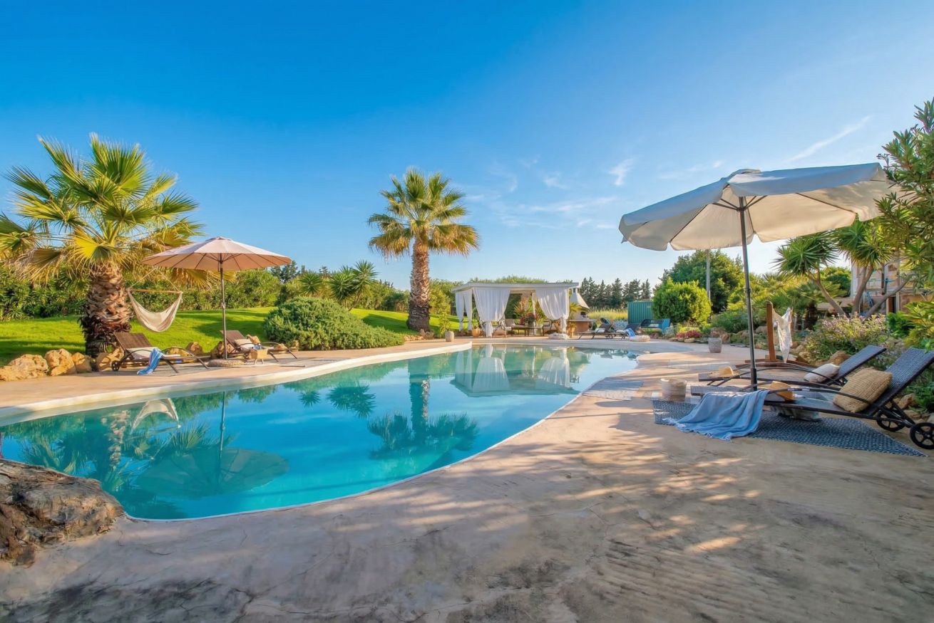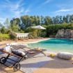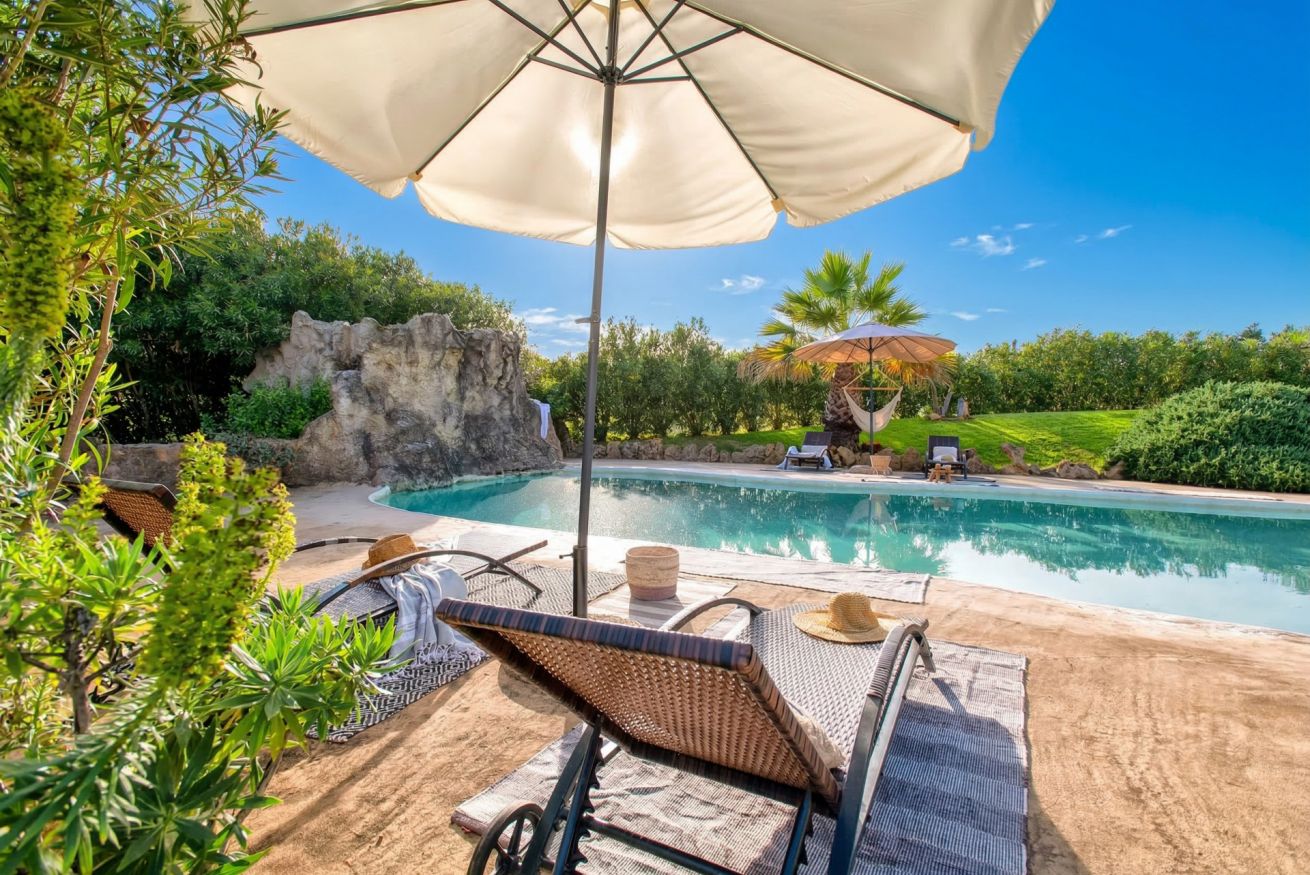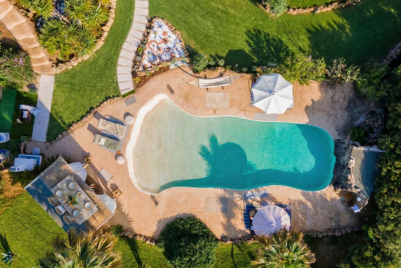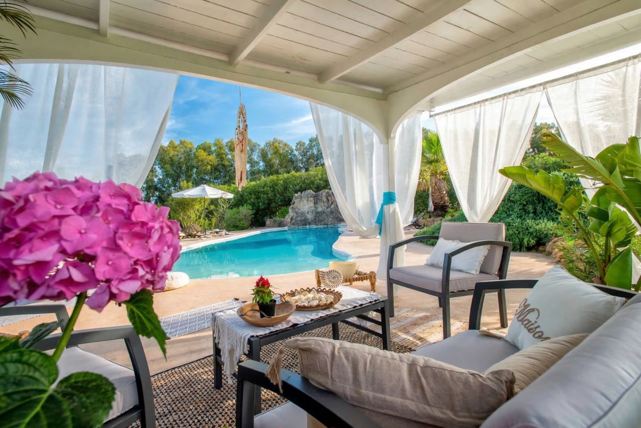 La villa dispone di una piscina effetto spiaggia a ridosso del grande gazebo bianco a uso completamente esclusivo.