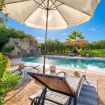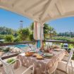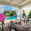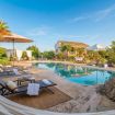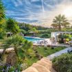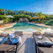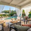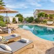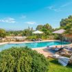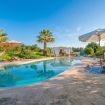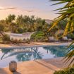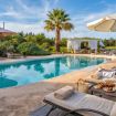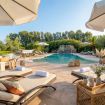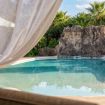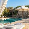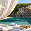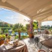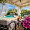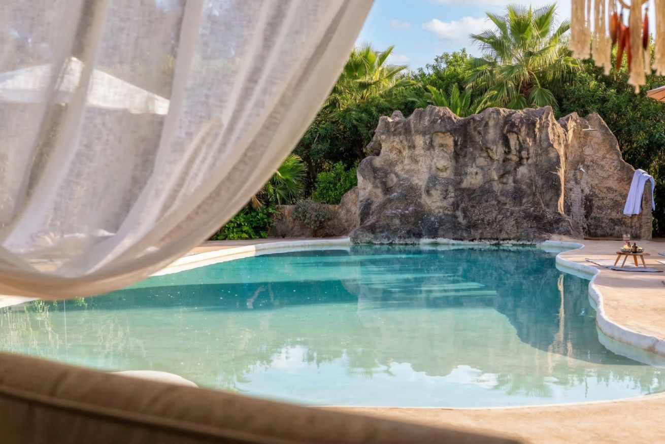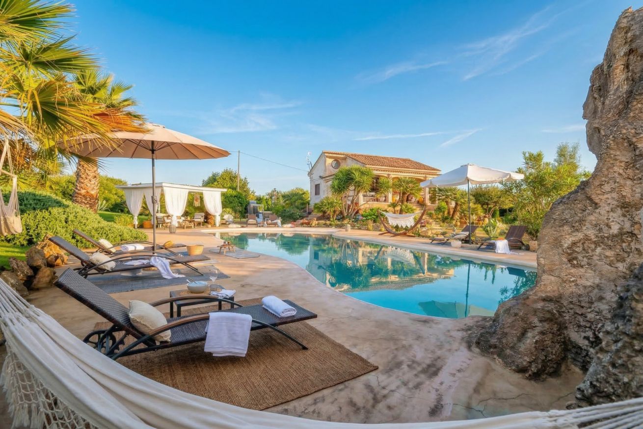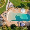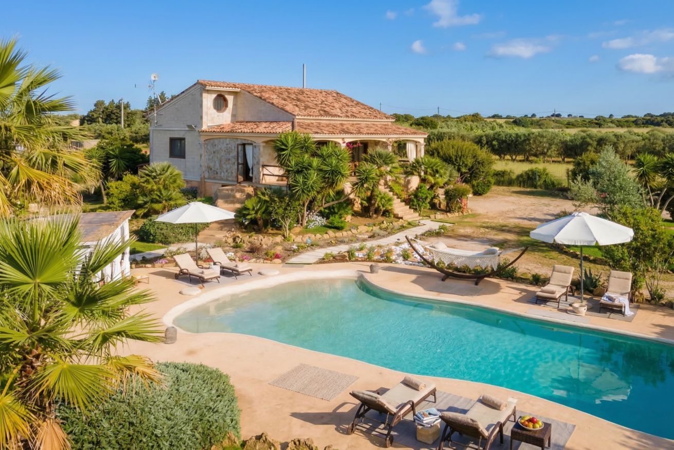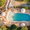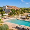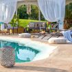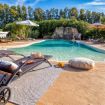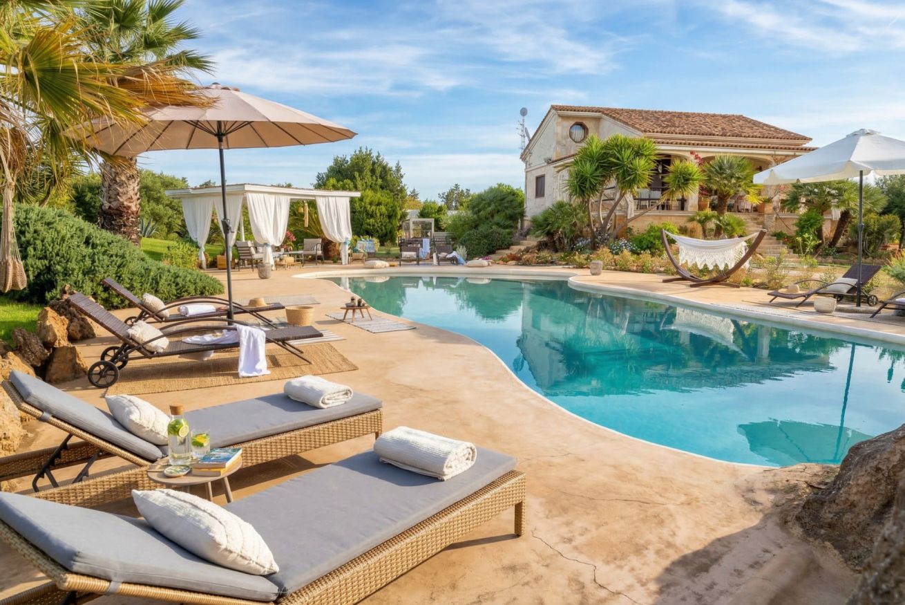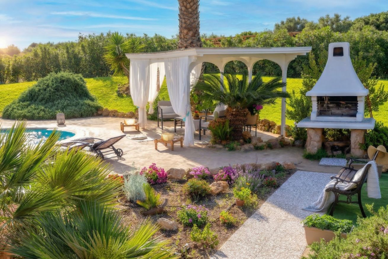 La villa dispone di una piscina effetto spiaggia a ridosso del grande gazebo bianco a uso completamente esclusivo.