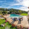 La magnifica piscina a sfioro con il prato all'inglese è di una bellezza disarmante.