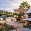 A ridosso della piscina è presente la doccia esterna ed il grande gazebo bianco.