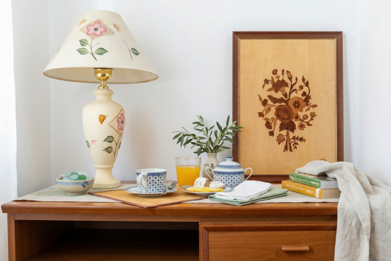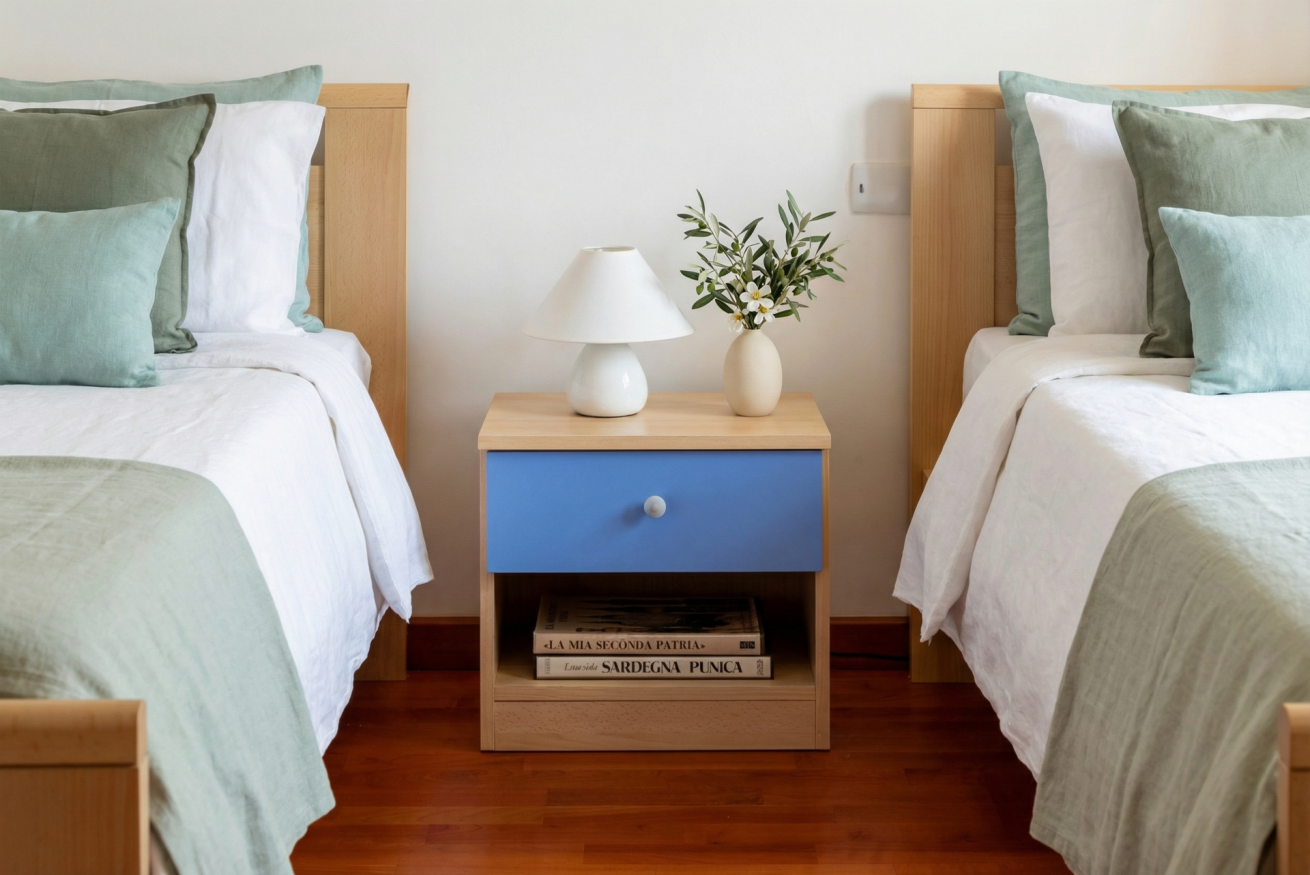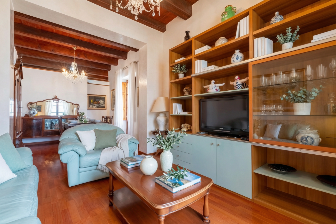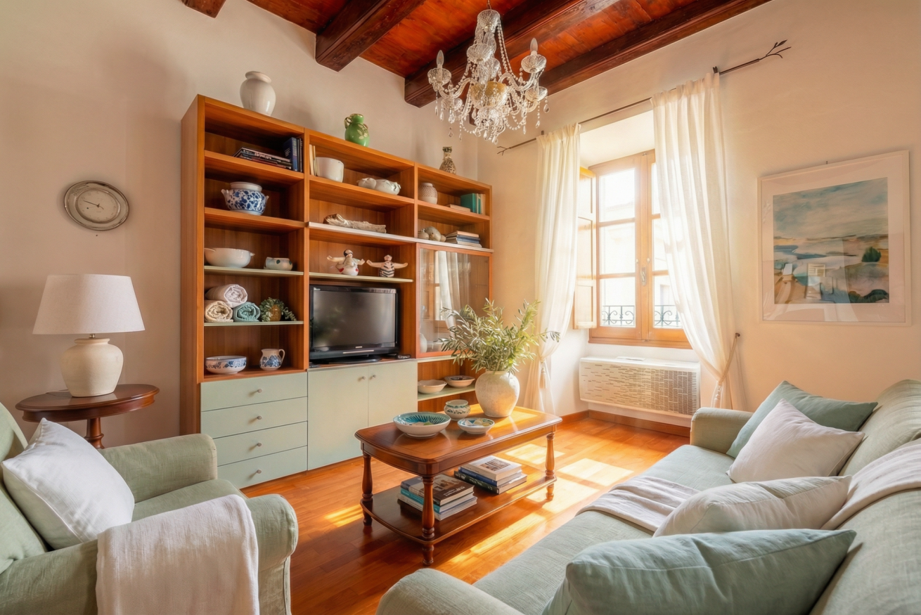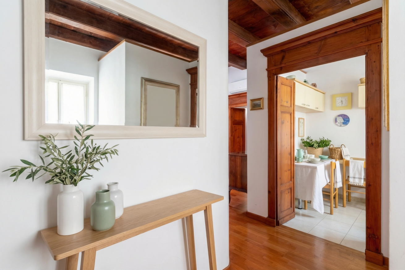La casa conserva tutto il fascino delle antiche dimore algheresi: soffitti con travi in legno a vista, ambienti luminosi e arredi in legno massello che raccontano la storia della casa e della città, creando un’atmosfera calda, elegante e accogliente.