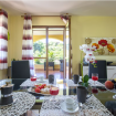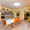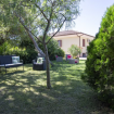 Questa grande villa bifamiliare, arredata con gusto ed eleganza, è immersa in un bel giardino ben curato con prato e mobili da esterno, completi e molto funzionali.