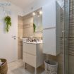 App.to 1 per tre persone: Una camera matrimoniale, una camera singola, due bagni (uno in suite senza doccia ed uno completo con doccia, salone e cucina.
