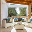 Ogni appartamento dotato di veranda coperta e attrezzata e nella zona posteriore della villa è presente una grande veranda coperta con tavolo e sedie per 18 persone a ridosso del barbecue e del parco giochi dei bambini.