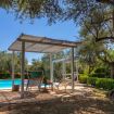 Patio: con accesso sul cortile con prato all’inglese, piscina ad uso esclusivo degli ospiti, porticato, arredo da esterno, doccia, barbecue.