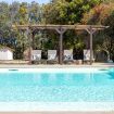 Il grande giardino privato, circondato da ulivi secolari e profumi di mirto e ginepro, ospita una splendida piscina recintata di 13x8 metri, perfetta per momenti di relax e divertimento. L’area esterna è impreziosita da eleganti zone lounge, lettini prendisole e una veranda coperta, dove è possibile godere di pranzi e cene all’aria aperta.