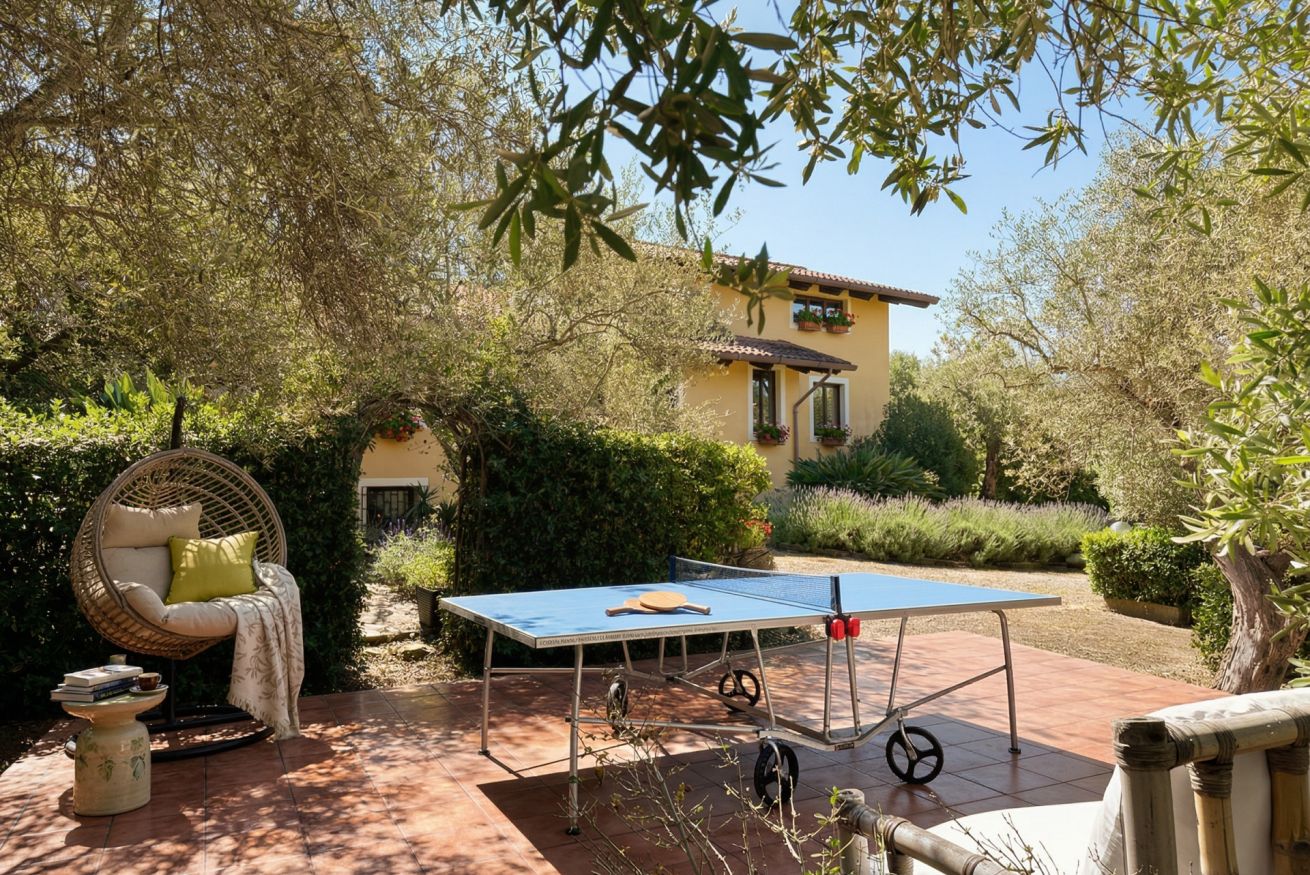 Circondata dalla natura, la villa regala un’atmosfera di pace autentica, dove le giornate scorrono tra i profumi della campagna mediterranea e i suoni naturali: il vento tra gli alberi, gli uccelli al mattino, il silenzio che diventa parte dell’esperienza.