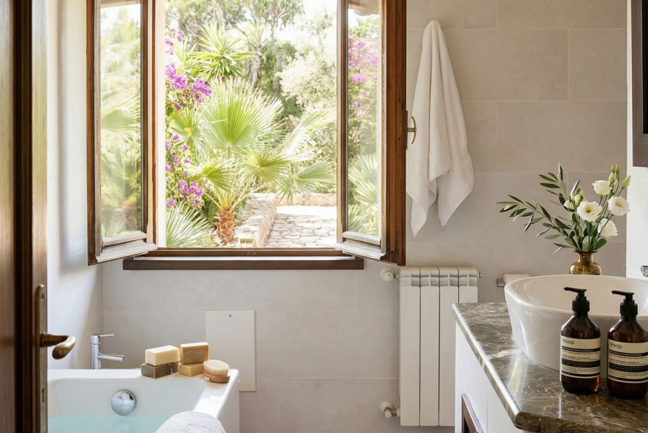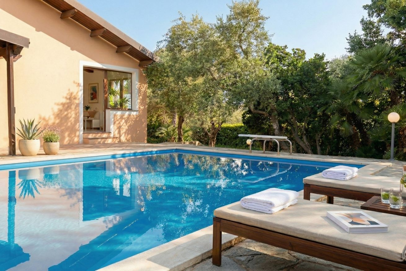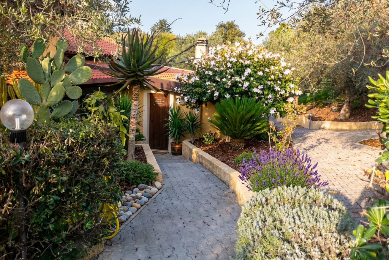 Circondata dalla natura, la villa regala un’atmosfera di pace autentica, dove le giornate scorrono tra i profumi della campagna mediterranea e i suoni naturali: il vento tra gli alberi, gli uccelli al mattino, il silenzio che diventa parte dell’esperienza.