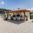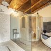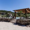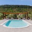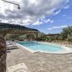 La piscine à débordement (4 m x 8 m – profondeur 1,5 m), offrant une vue imprenable sur les collines environnantes, est entourée d’un grand solarium équipé de chaises longues et de zones de détente ombragées, parfaites pour profiter d’une journée ensoleillée en toute intimité. Pour compléter l’expérience, il y a un espace barbecue et une cuisine extérieure avec un four à pizza, entièrement équipée pour organiser des repas en plein air. La douche extérieure, avec eau chaude et froide, est située à proximité des oliviers, garantissant une intimité totale.