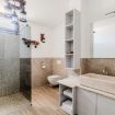 Toutes les chambres sont conçues pour garantir un confort et une intimité maximales. Les suites spacieuses, meublées avec des matériaux de haute qualité et des détails de design, offrent un accès direct au jardin à travers la grande baie vitrée du salon au rez-de-chaussée. Chaque chambre dispose d’un lit double, l'une des chambres ayant une salle de bain attenante et un accès direct aux espaces extérieurs, créant un parfait équilibre entre élégance et nature. Les deux autres suites partagent une grande salle de bain avec douche.