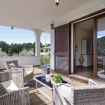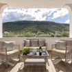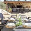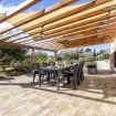 Les espaces extérieurs de la Villa Flamingo sont un véritable paradis pour ceux qui aiment vivre en plein air. La grande terrasse panoramique, meublée de canapés confortables et d'une salle à manger ombragée, est l'endroit idéal pour profiter des dîners sous les étoiles ou des moments de détente au coucher du soleil avec vue sur la nature environnante. Le jardin, entretenu dans les moindres détails, s'inspire de la flore locale, intégrant des plantes typiques du maquis méditerranéen dans un environnement harmonieux et ressourçant.
