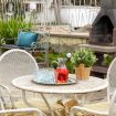 Il giardino, protetto da un cancello con ingresso privato, è arredato con comodi mobili da esterno, perfetto per gustare i pasti all’aperto durante le piacevoli serate estive o semplicemente rilassarsi in compagnia.