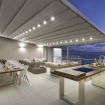 Di corredo alla casa vi è poi una grande terrazza con copertura mobile di circa 100 mq., posta al primo piano e ombreggiata da una tenda azionabile elettricamente, affacciata direttamente sul golfo.