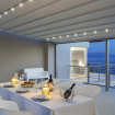 Tutti gli ambienti di cui si compone, con la sola esclusione di quelli di servizio, fronteggiano il mare e dispongono di ampie vetrate e verande, che le proteggono dal sole estivo e al contempo offrono agli ospiti la vista di un panorama da sogno, sia all’interno della camera che nello spazio esterno a loro riservato.