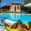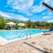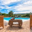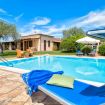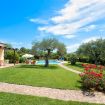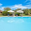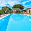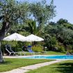 Nel grande giardino che circonda la villa troviamo una favolosa piscina a sfioro (8mx7m – profonda 130/ 280cm) di un bellissimo color turchese con sdraio e ombrelloni. La piscina ha una profondità di 2,80 metri nel punto più profondo, la zona barbecue completa e una terrazza coperta (pergola).