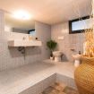 Al piano terreno della villa troverete sei camere da letto, di cui cinque matrimoniali e una camera con due letti singoli e tre bagni (uno con vasca normale e due con doccia).