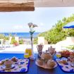 The villa has a large terrace with sea view and a covered patio where you can have lunch and dinner in front of the beach.