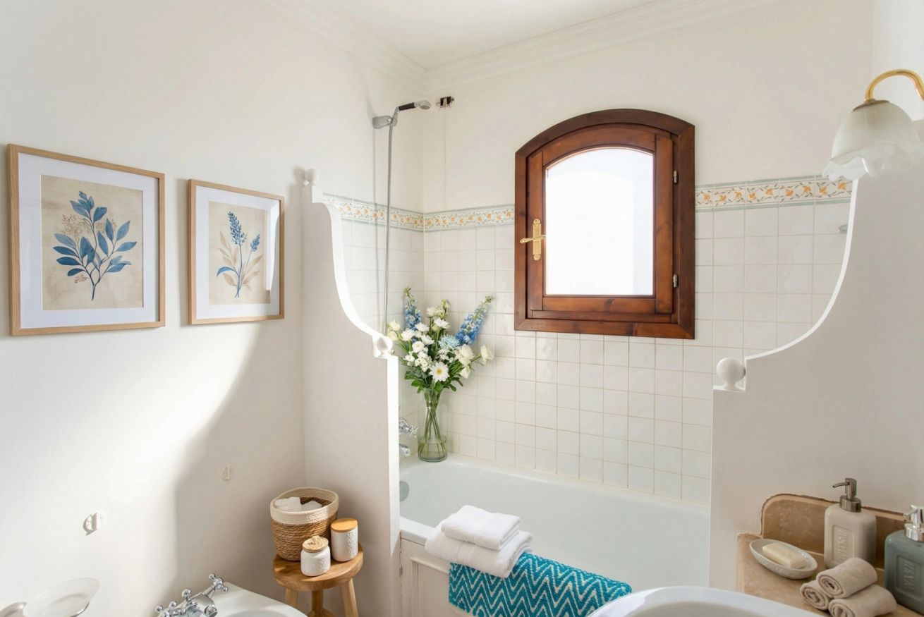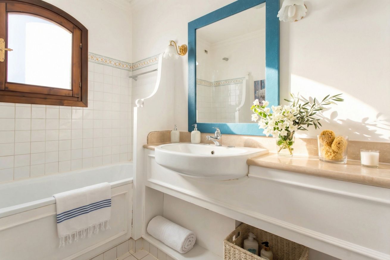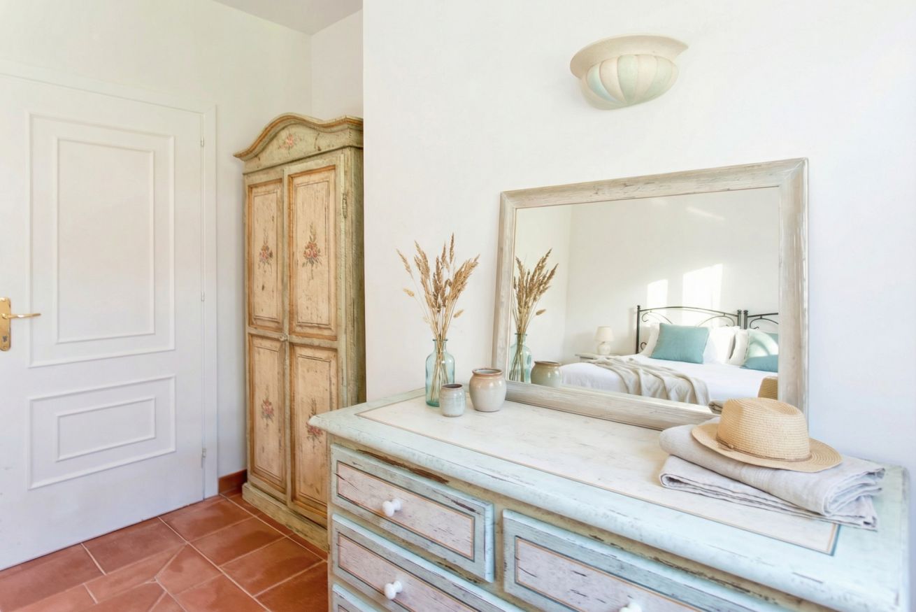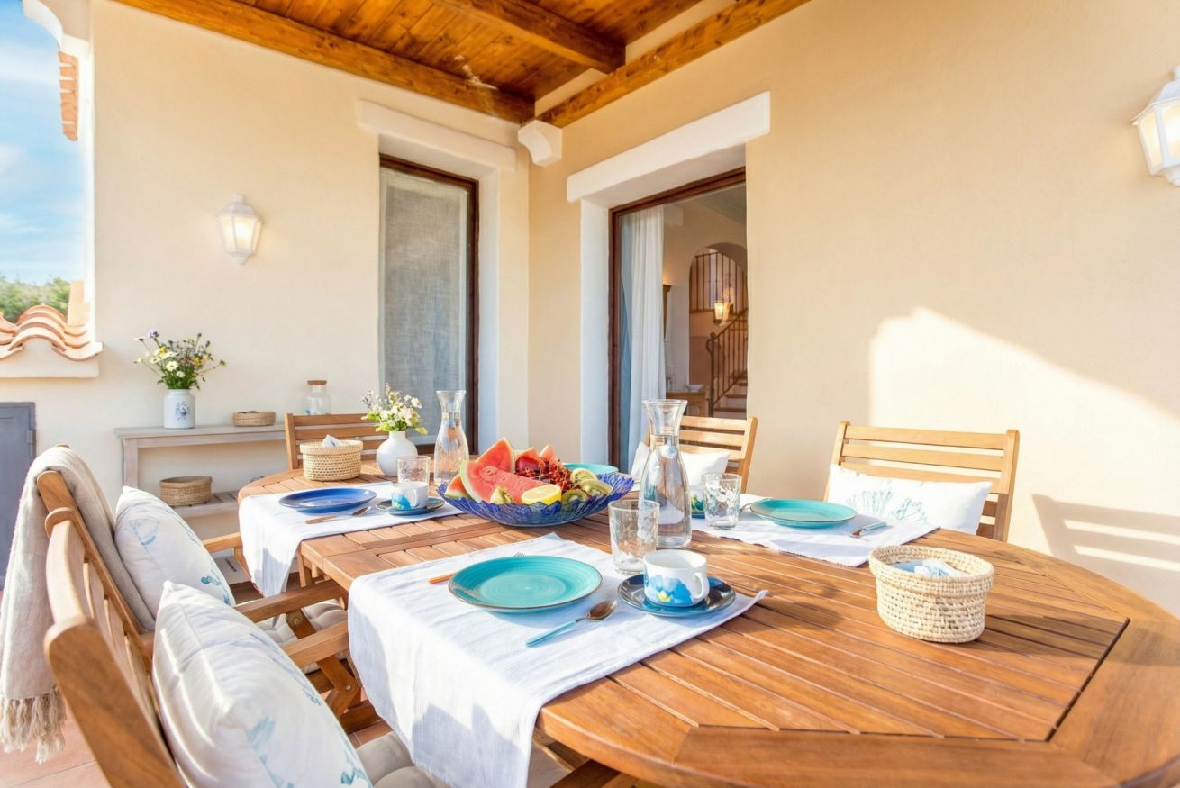 La villa è decorata in stile tradizionale sardo ed il connubio con la natura circostante, tra il verde degli alberi ed il turchese del mare, la rende unica nel suo genere.