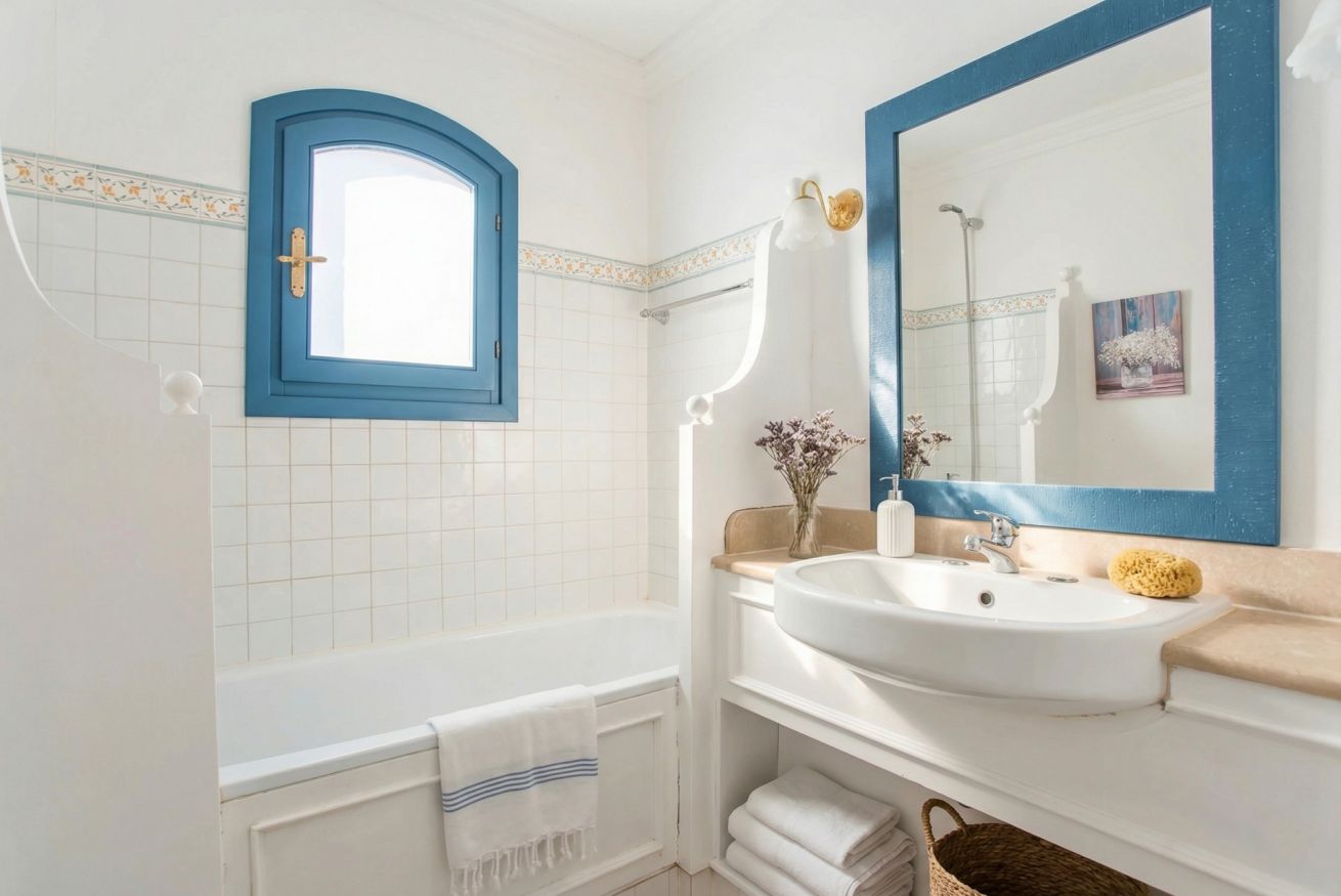 La villa è dotata di un’ampia cucina appena rinnovata, due bagni (uno con doccia ed uno con vasca) 4 camere da letto con aria condizionata, disposte due al piano basso e due al piano alto della villa caratterizzate queste ultime da una ulteriore veranda privata vista mare.