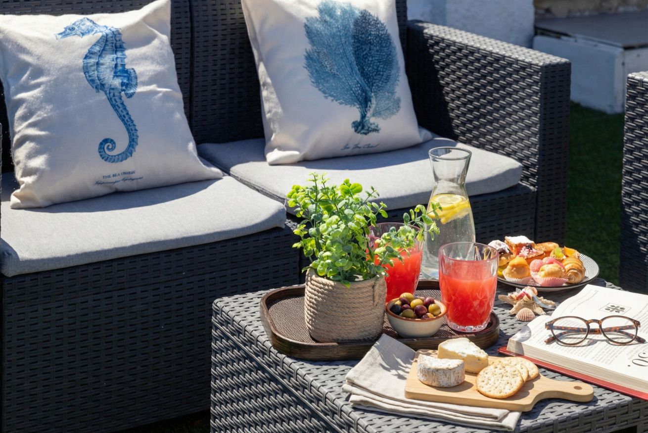 - Patio esterno arredato, ideale per pranzi all’aperto, letture al tramonto o aperitivi con vista