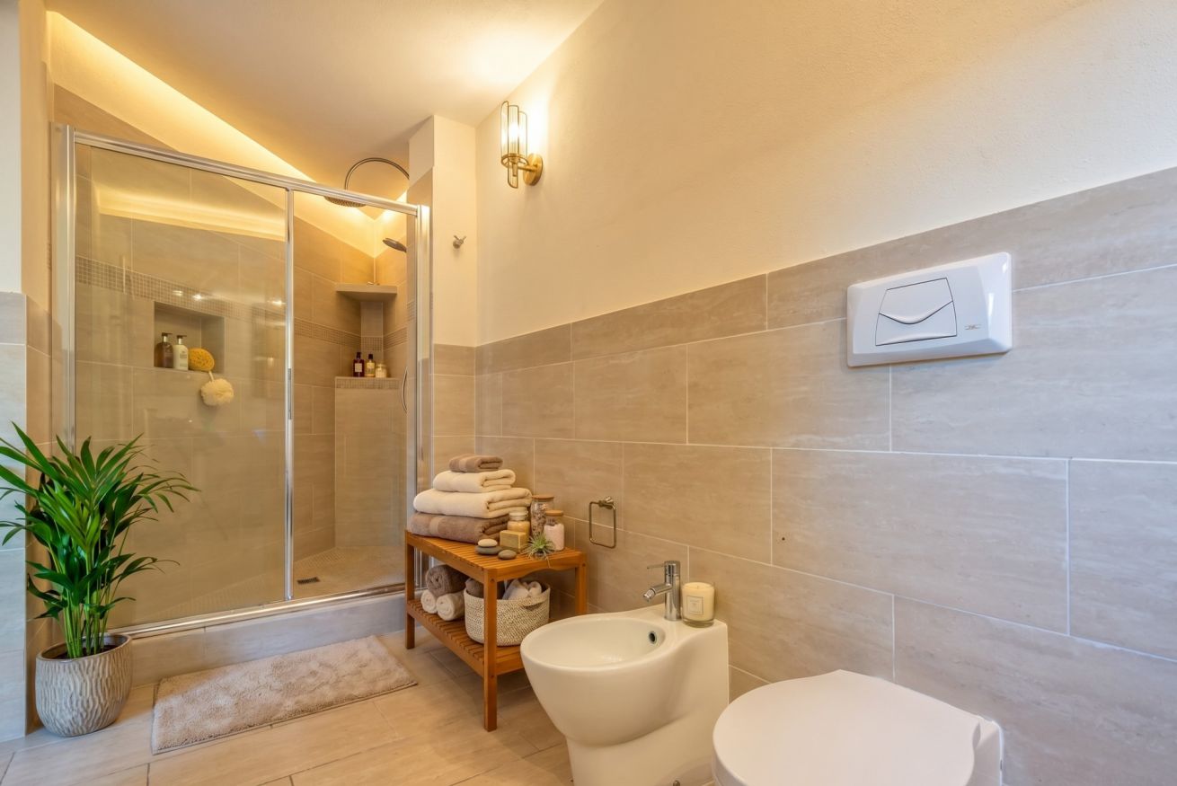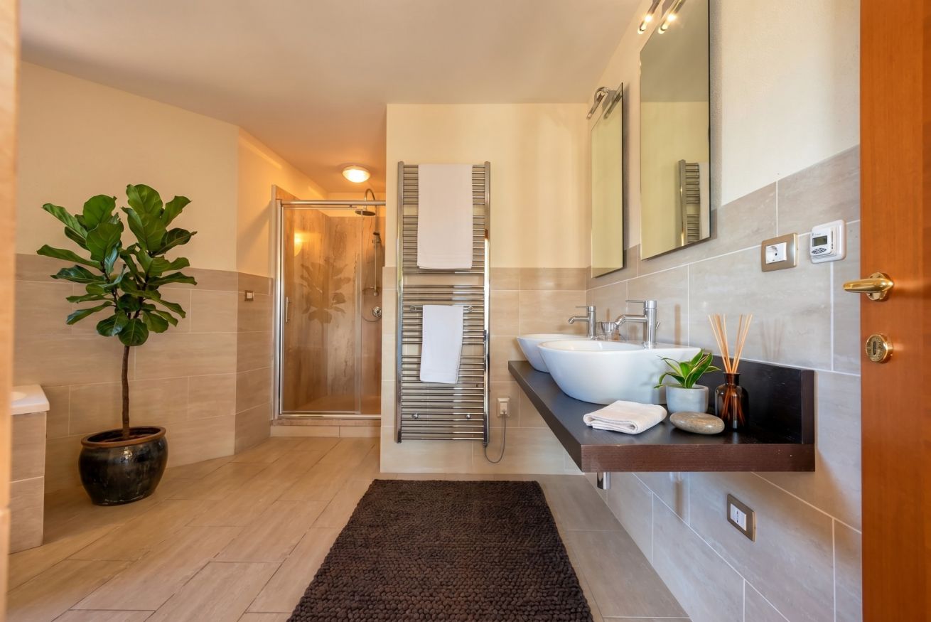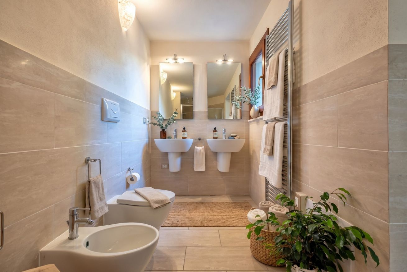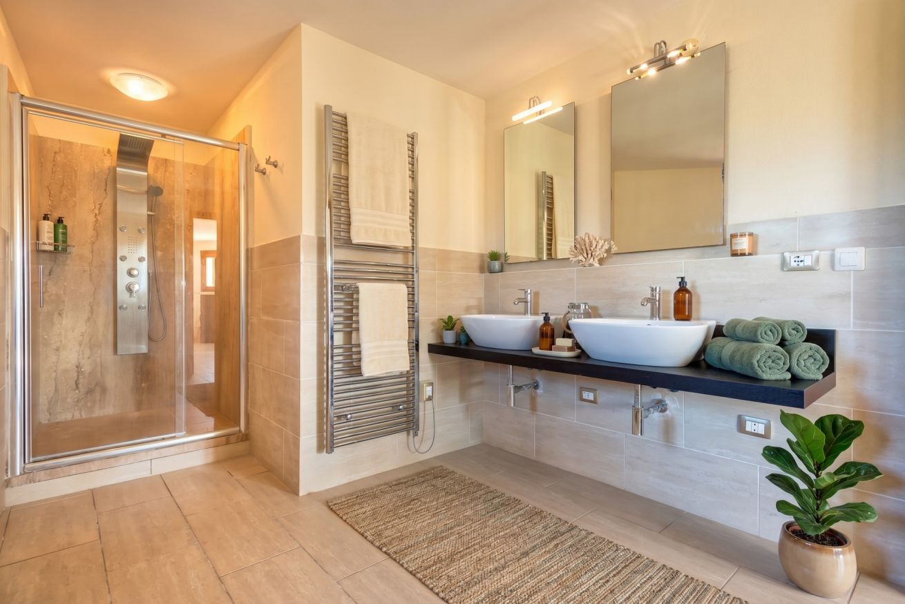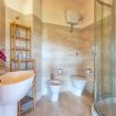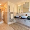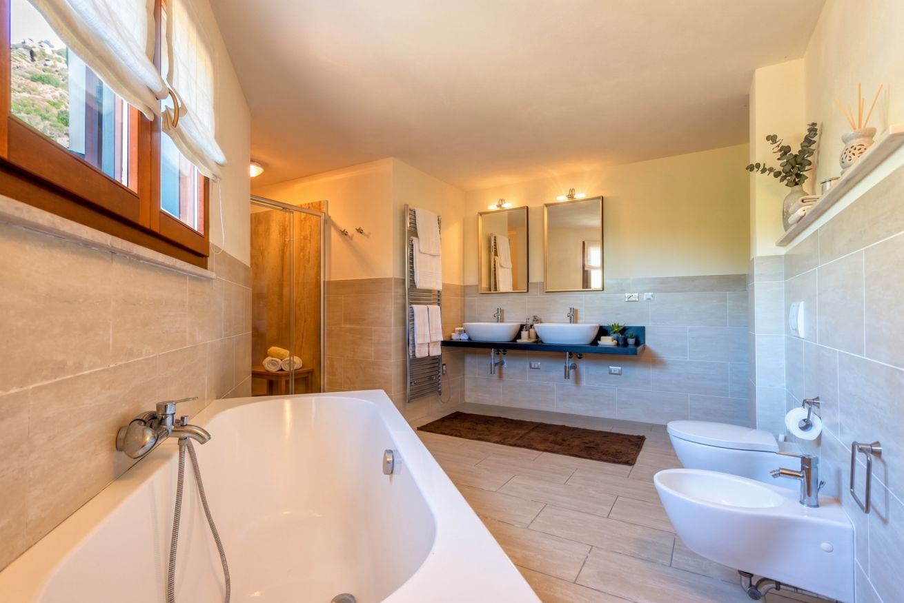 Il y a quatre salles de bains dans la villa avec douche, complète avec lavabo, double lavabos, bidet, et une salle de bains a à la fois douche et baignoire.