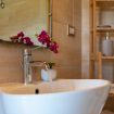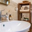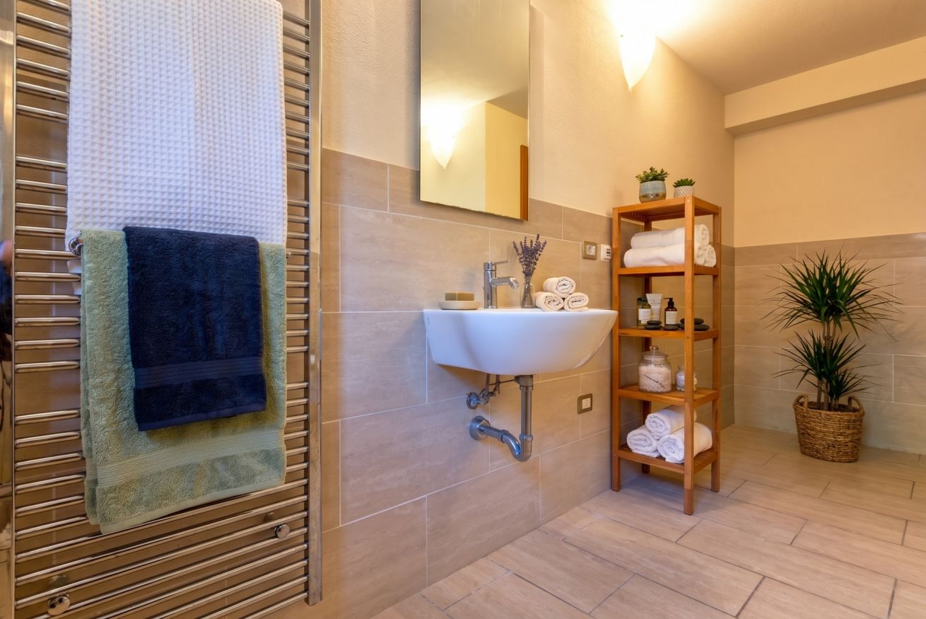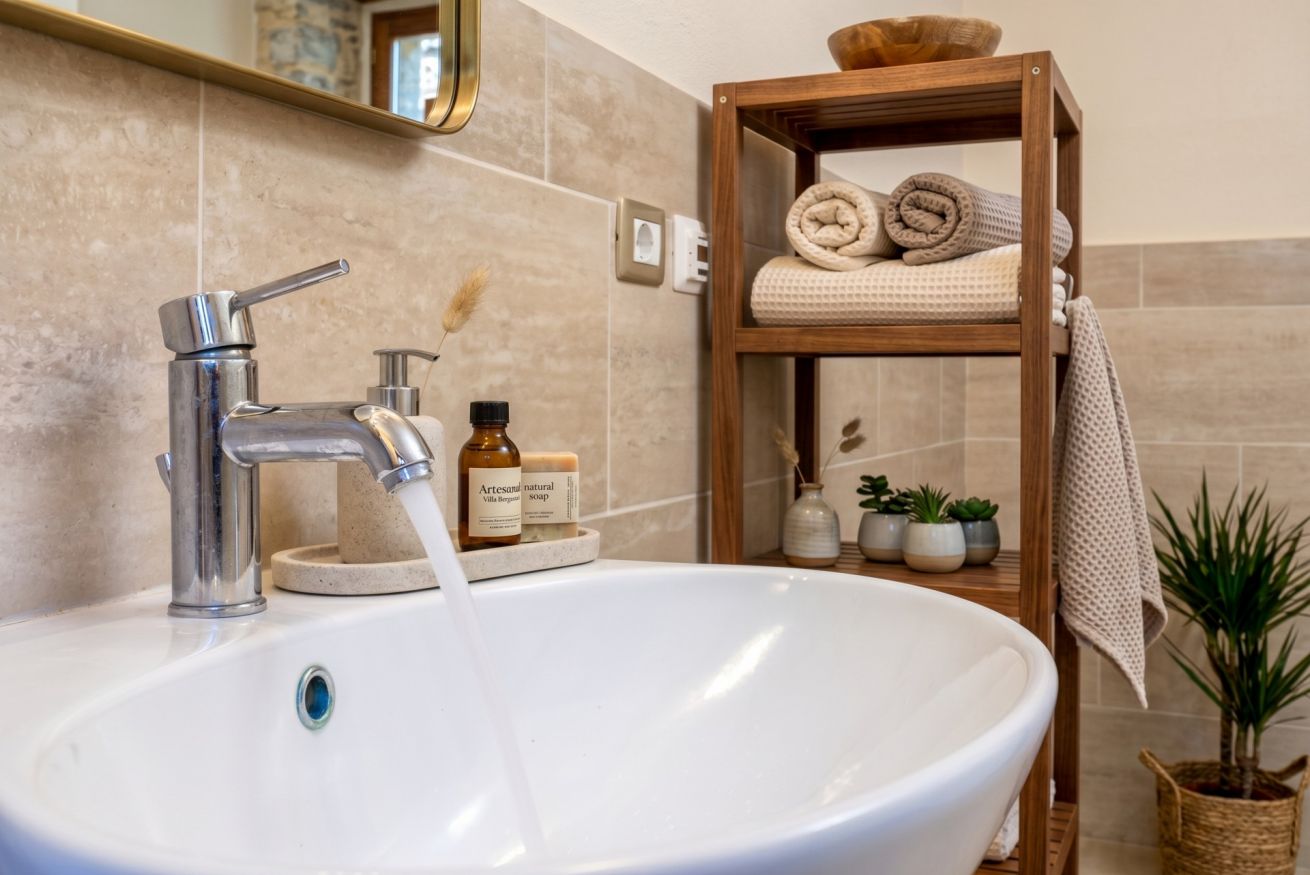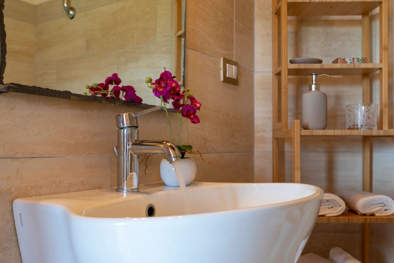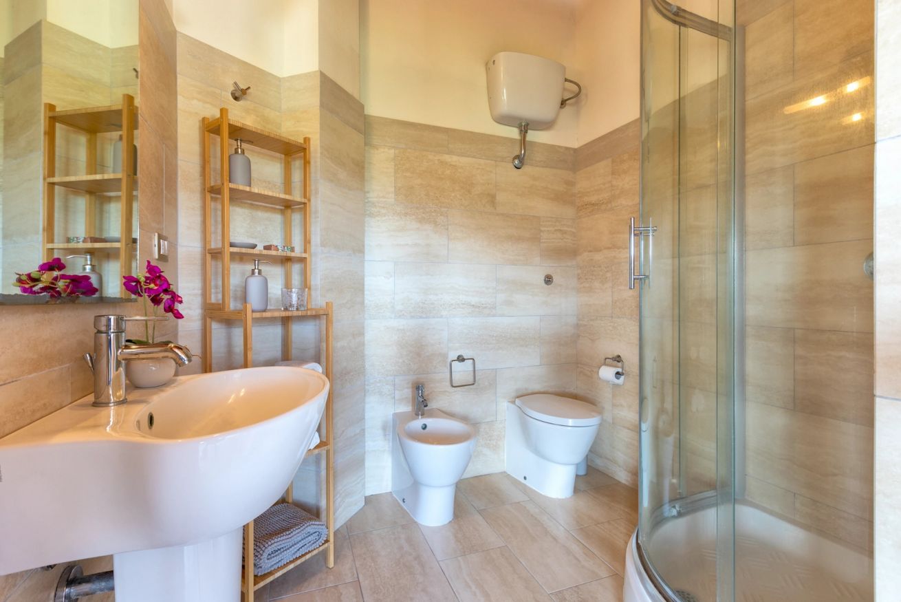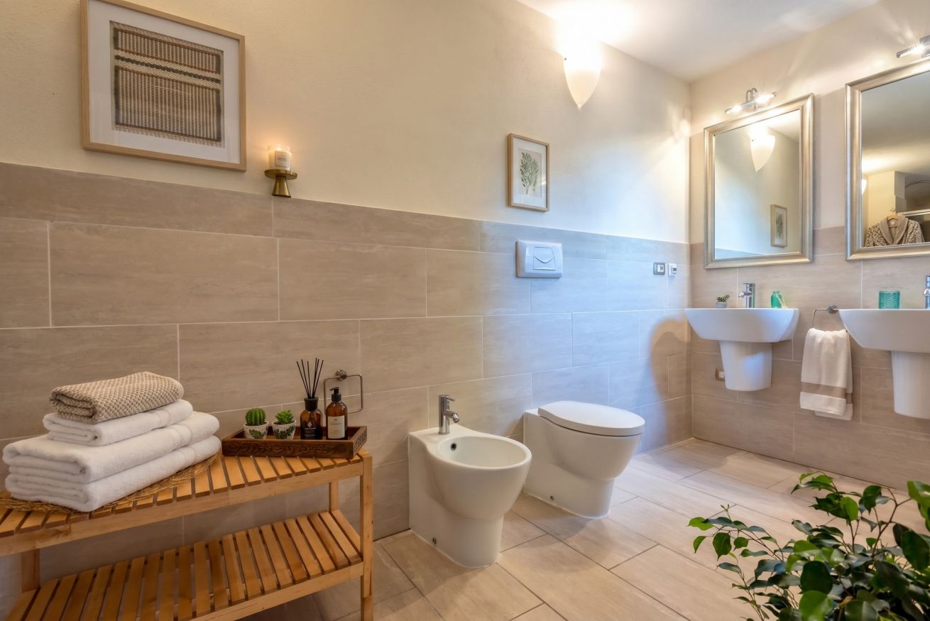 Il y a quatre salles de bains dans la villa avec douche, complète avec lavabo, double lavabos, bidet, et une salle de bains a à la fois douche et baignoire.