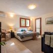 • Chambre 5 étage supérieur - Chambre double, climatisation, grande fenêtre donnant sur le jardin, salle de bains avec douche.