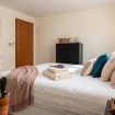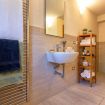 • Chambre 4 rez-de-chaussée - Deux lits superposés pour 4 personnes au total, salle de bains avec douche à côté de la chambre.